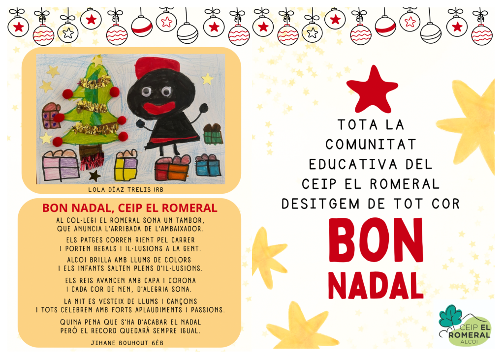 LA COMUNITAT EDUCATIVA DEL CEIP EL ROMERAL US DESITJA UN NADAL PLE D’AMOR, PAU I ALEGRIA