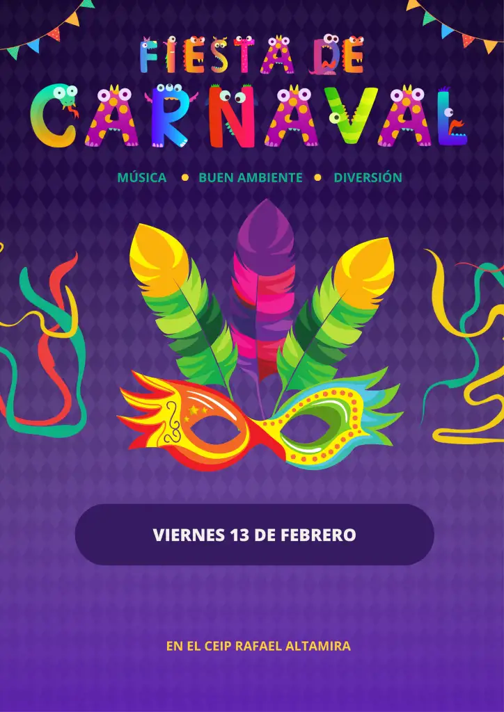 El Carnaval llega al cole y queremos celebrarlo a lo grande. Ven con tu mejor disfraz, muchas ganas de reír y preparado para un día lleno de color, música y sorpresas.