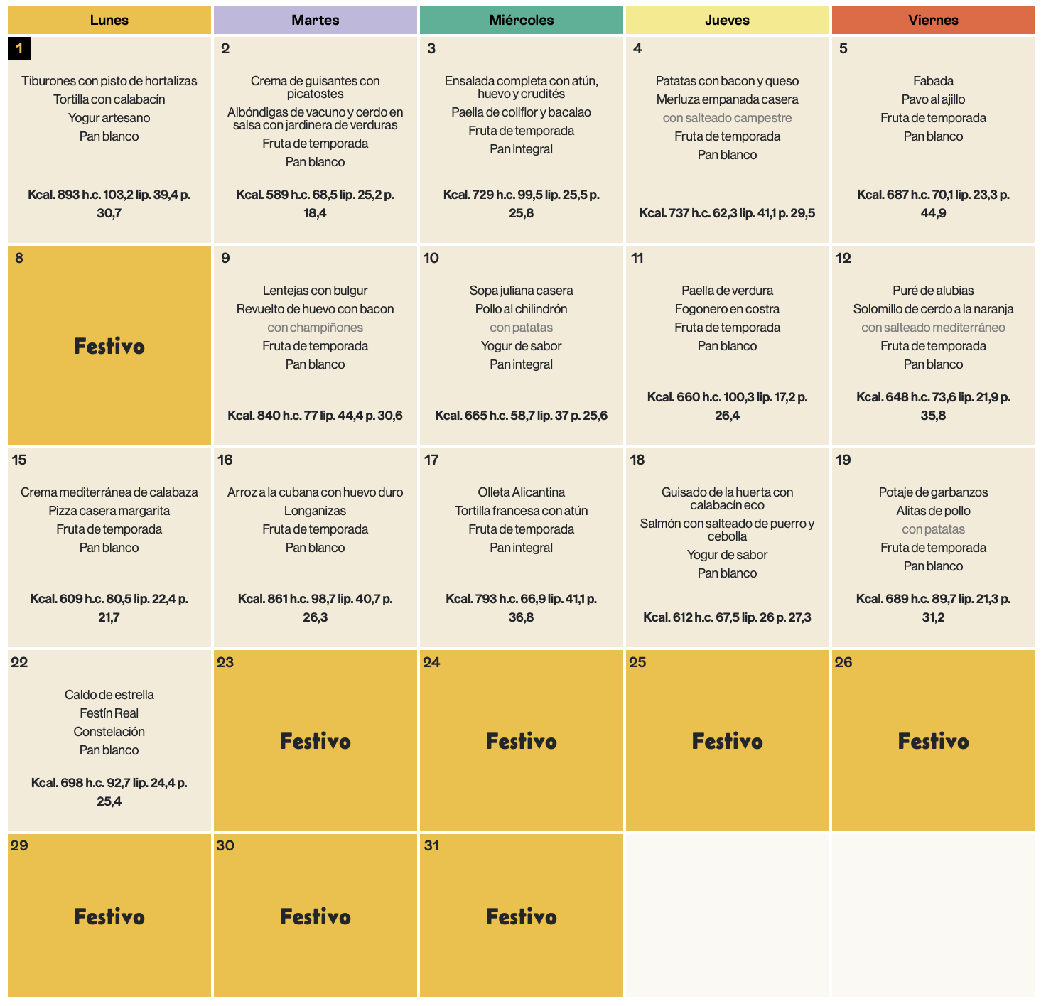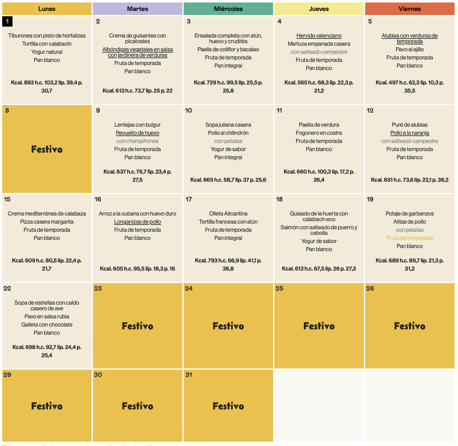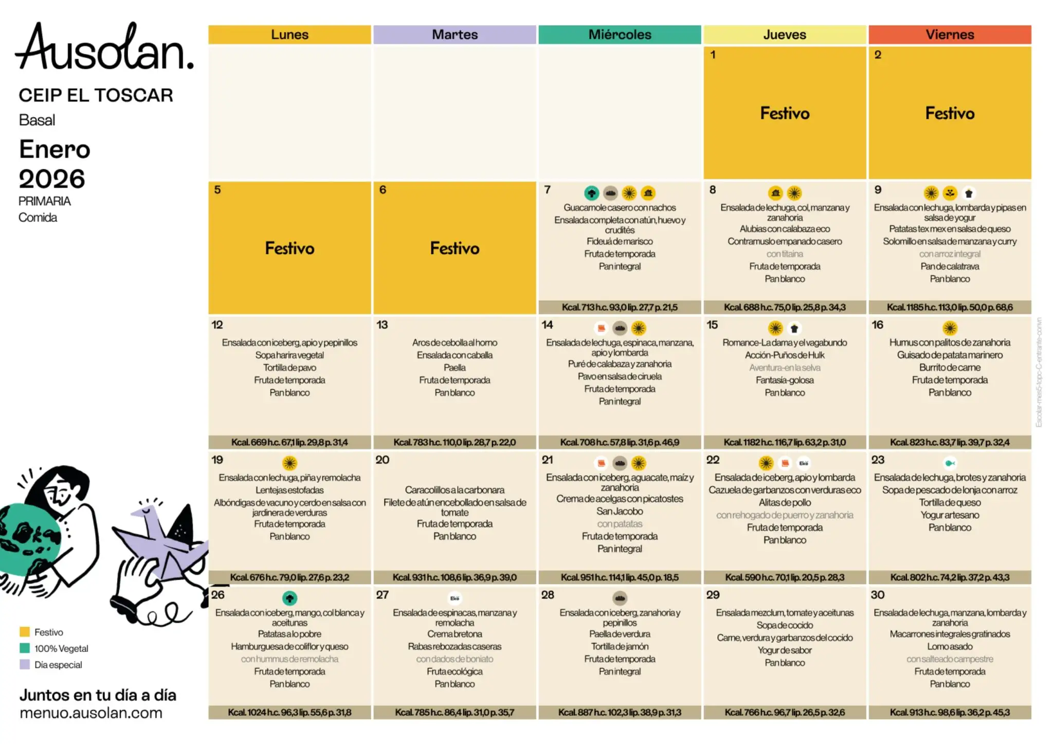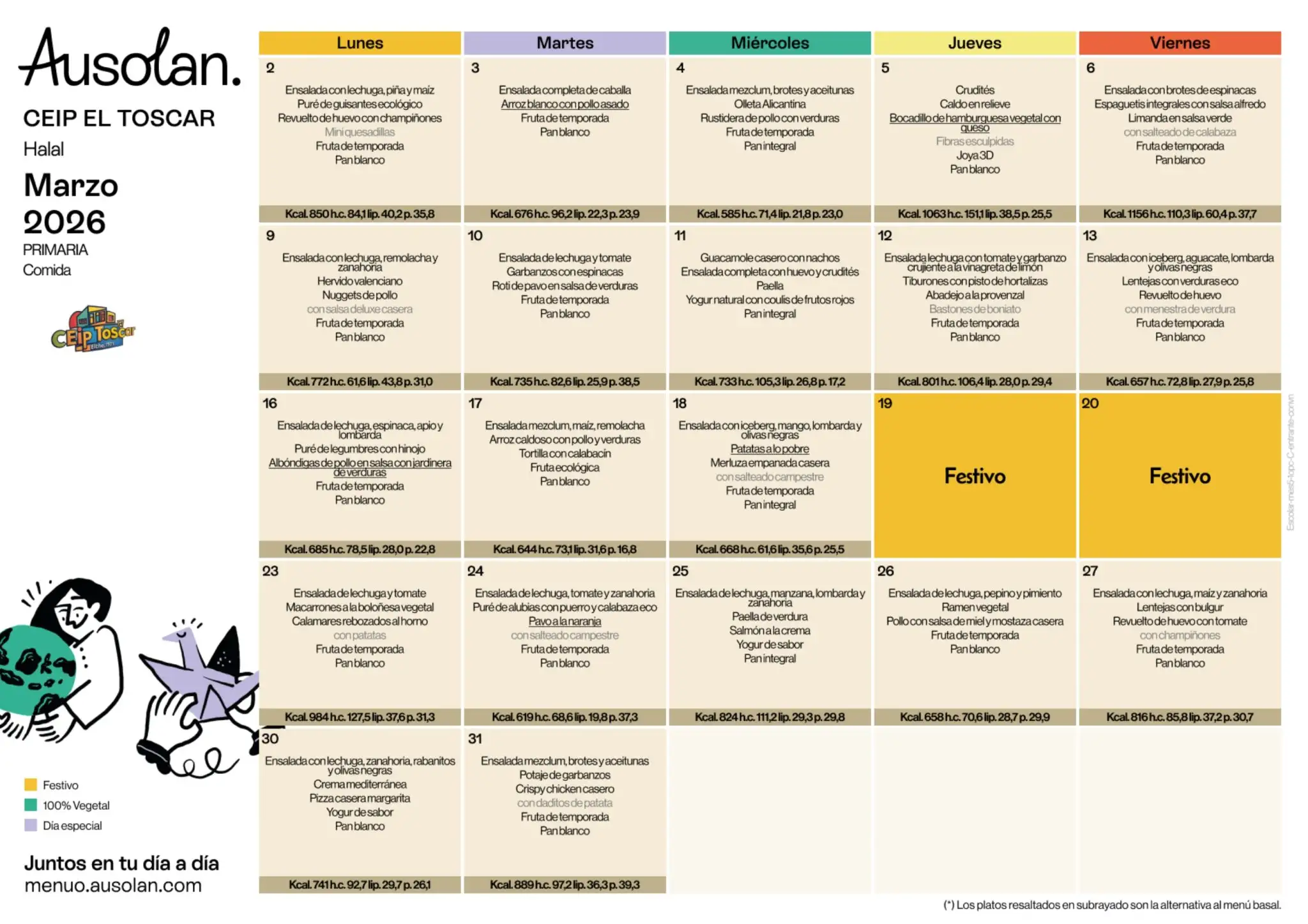 En este espacio colgaremos las variedades del menú equilibrado de los diferentes meses del curso escolar, ofrecido por la cooperativa AUSOLAN en el comedor de nuestra escuela.
