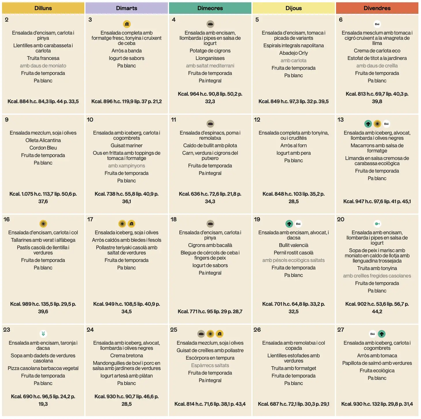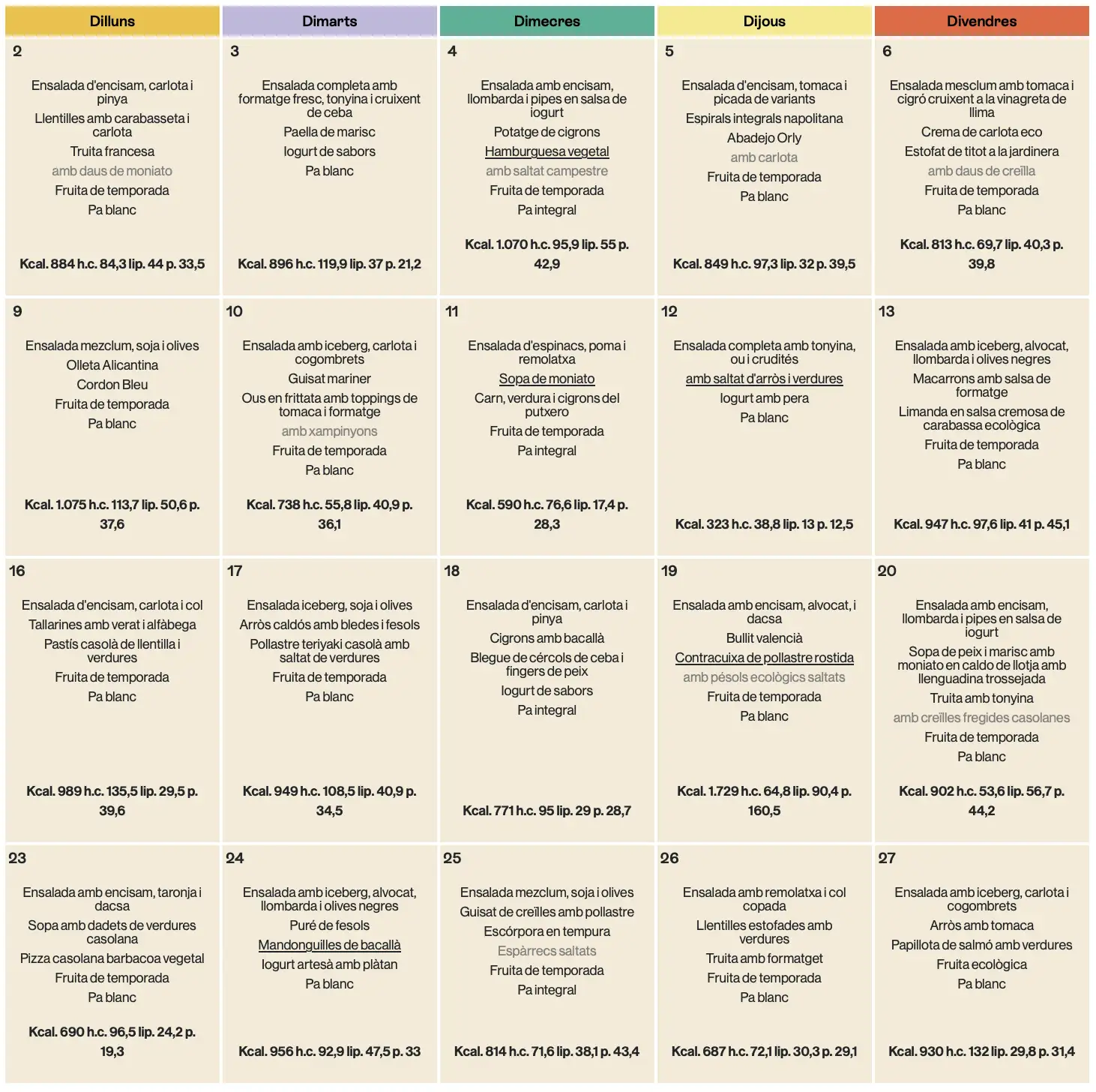 En aquest espai penjarem les varietats del menú equilibrat dels diferents mesos del curs escolar, oferit per la cooperativa AUSOLAN en el menjador de la nostra escola.