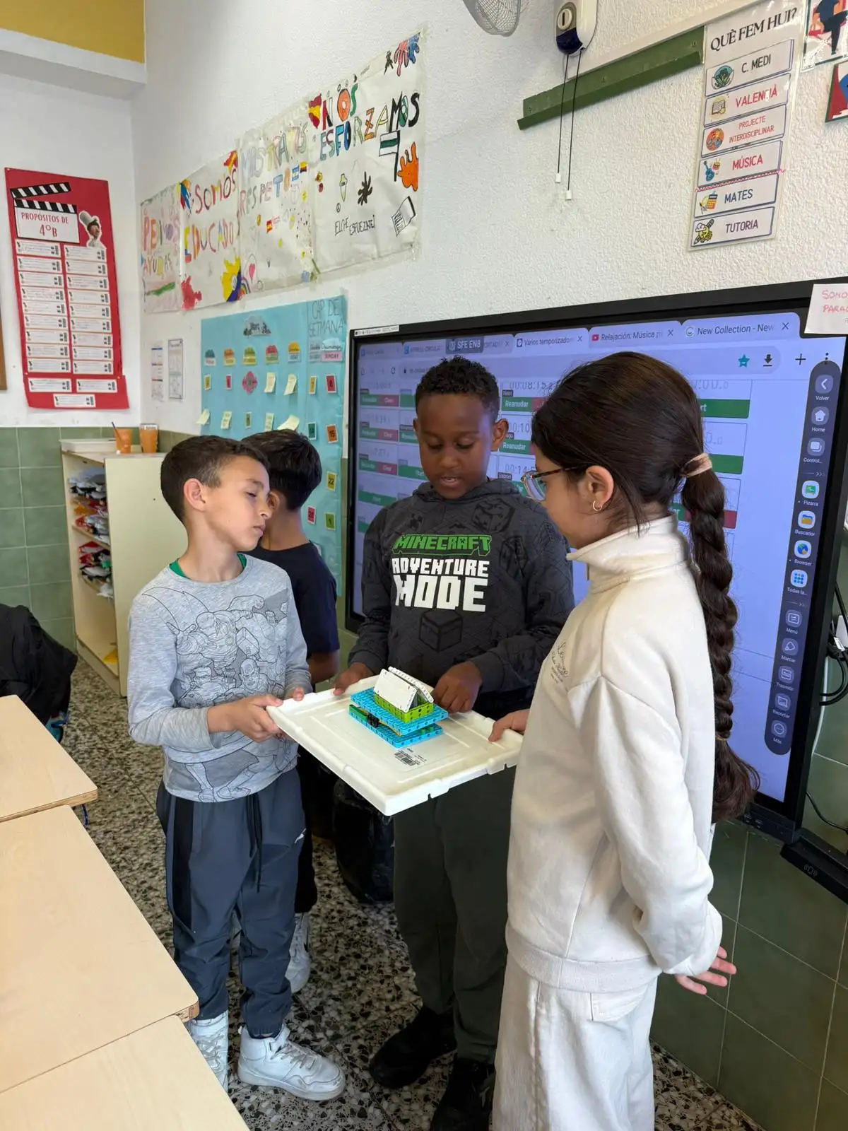 A continuació, en la fase de construcció, l’alumnat desenvolupa projectes contextualitzats com ara diques, cadenes tròfiques, plantes de reciclatge o cases elevades, aplicant els coneixements adquirits de manera pràctica i creativa.