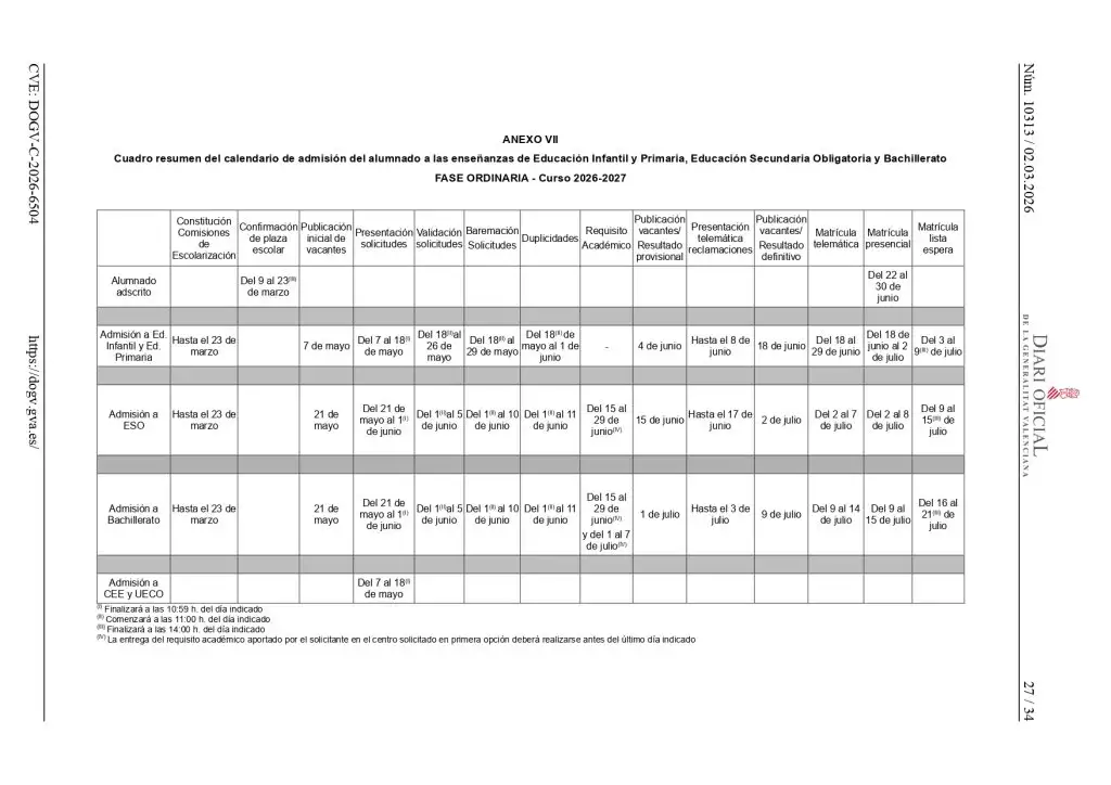 ADMISIÓN ALUMNADO A LAS ENSEÑANZAS DE INFANTIL Y PRIMARIA CURSO 2026/2027