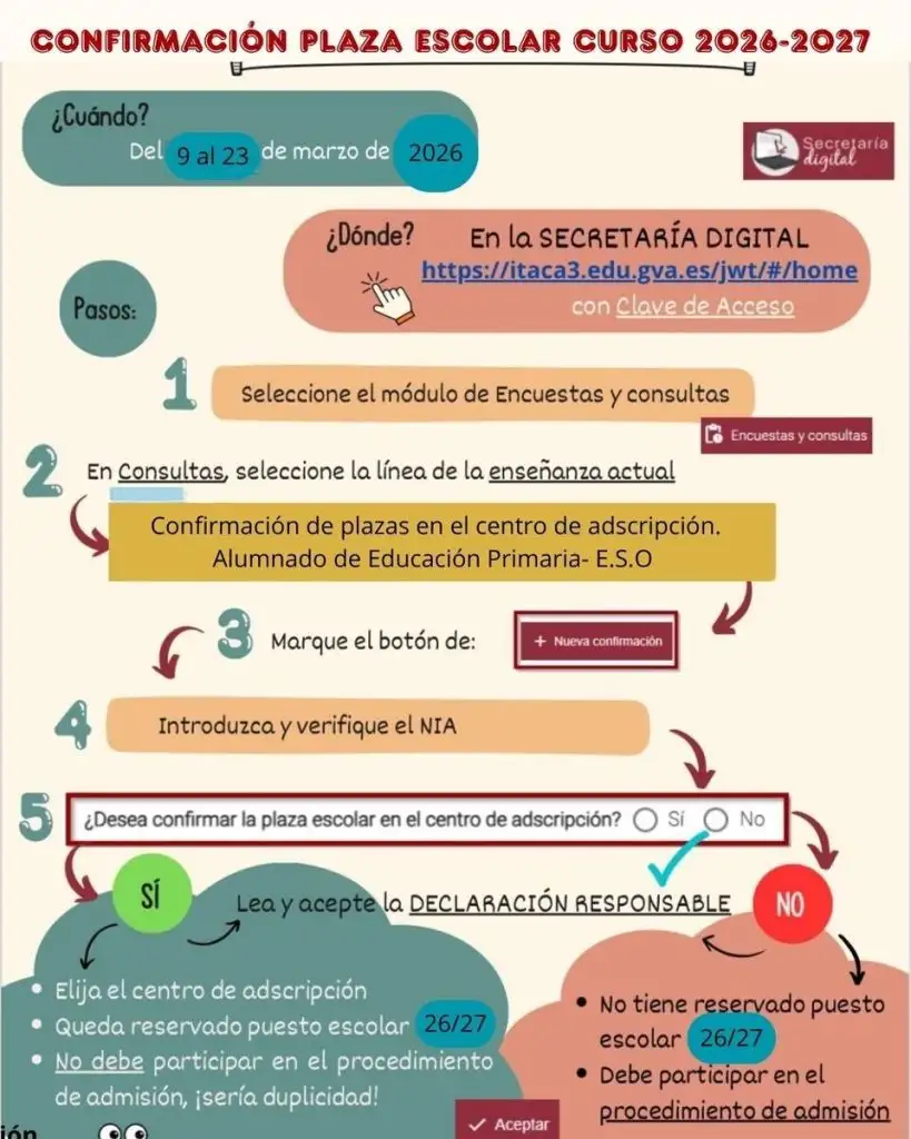 Los alumnos de 6º deben confirmar plaza en el IES de adscripción o participar en el proceso de admisión si desean ir a otro instituto.