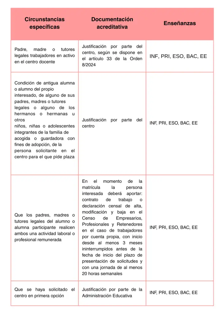 Según el decreto 48/2024 de 23 de abril, del Consell, cada centro podrá asignar 1 punto al alumnado en quién concurra la circunstancia específica determinada por el consejo escolar al solicitar plaza.
