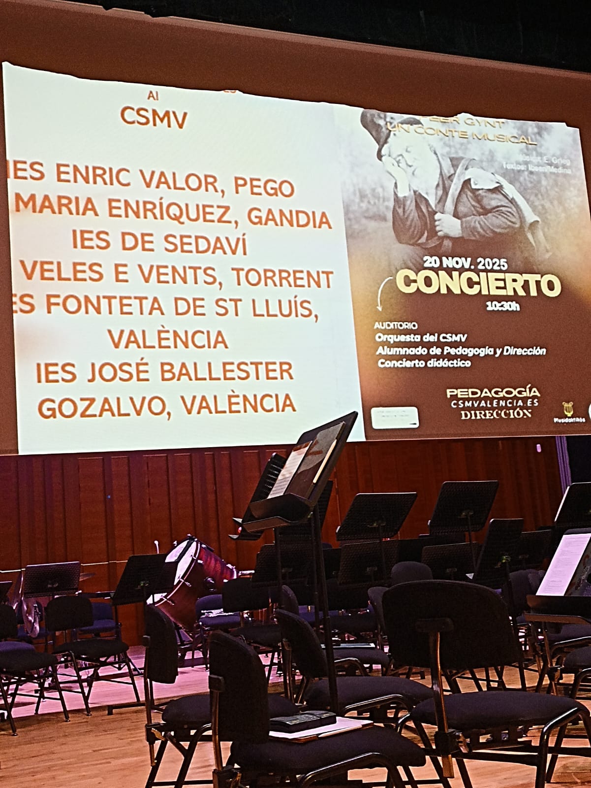 El passat 20 de novembre, l’alumnat de 3r d’ESO va participar en la proposta educativa Peer Gynt, un conte musical, una activitat organitzada pel Conservatori Superior de Música de València (CSMV) que combina música, narració i interpretació teatral per acostar la música clàssica als joves.