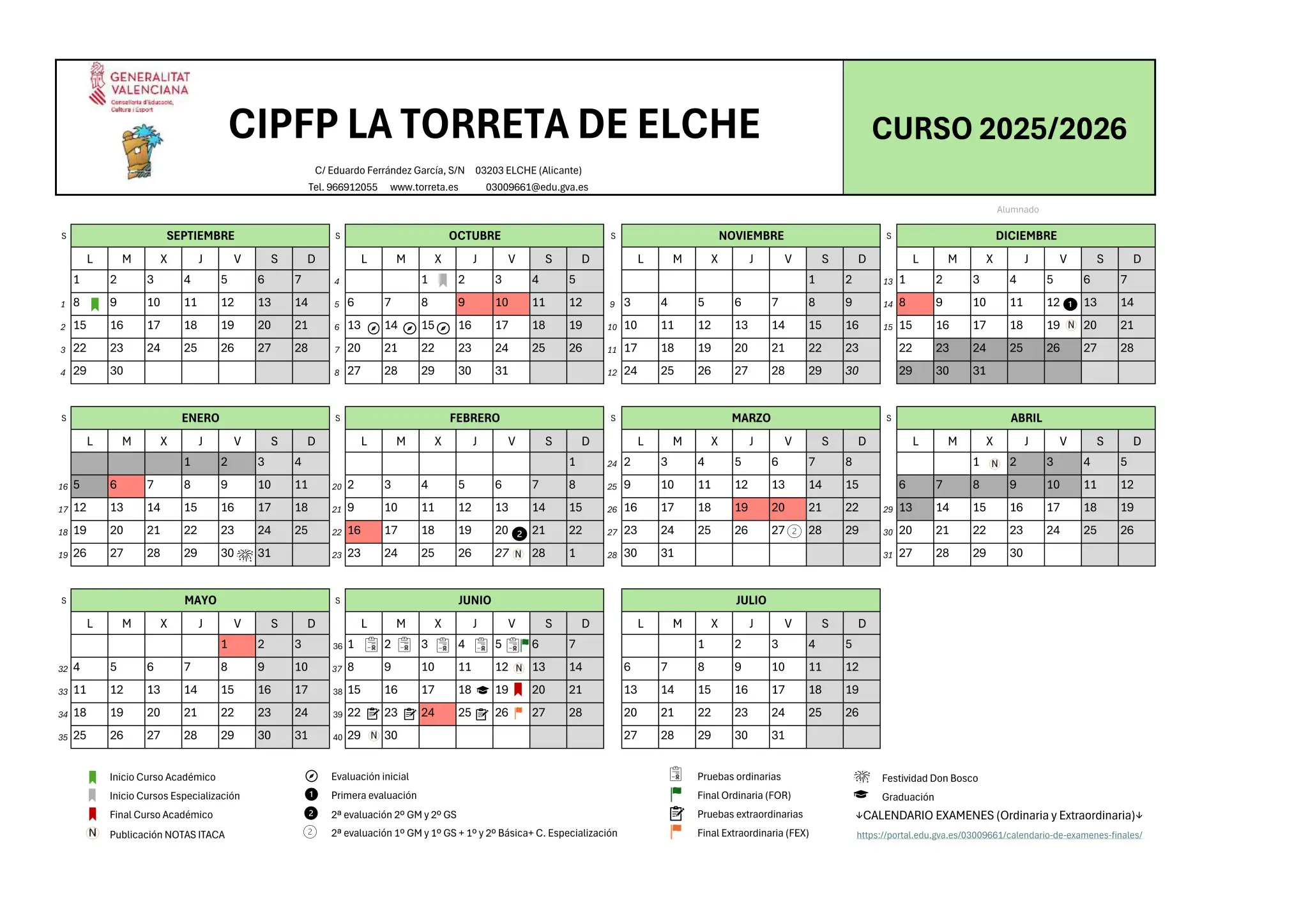 Calendario escolar alumnado