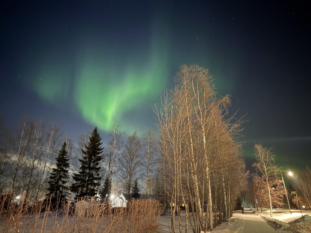 Durante nuestros ocho días en Liminka nuestros alumnados pudieron conocerse mutuamente mientras visitábamos el pueblo, competíamos en diversos juegos y deportes o aprendíamos un poco de finlandés. Hicimos una visita a una vaquería familiar, a la cercana ciudad de Oulu y a un centro de visitantes para la observación de aves. El último día en el instituto los alumnos trabajaron en presentaciones sobre alimentación sostenible y cocinaron varios platos típicos. Por las tardes había tiempo para esquiar, pescar bajo el hielo, bañarse en agua helada o probar las saunas. Y por las noches, por supuesto, tratábamos de ver auroras boreales.