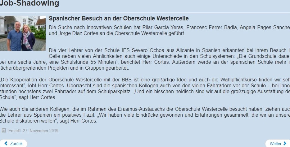 NOTICIA DE NUESTRA VISITA EN LA WEB DE OBERSCHULE WESTERCELLE.
