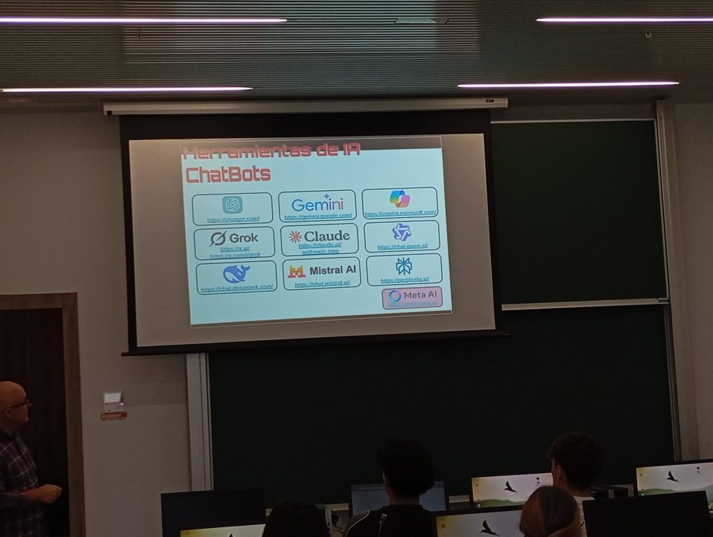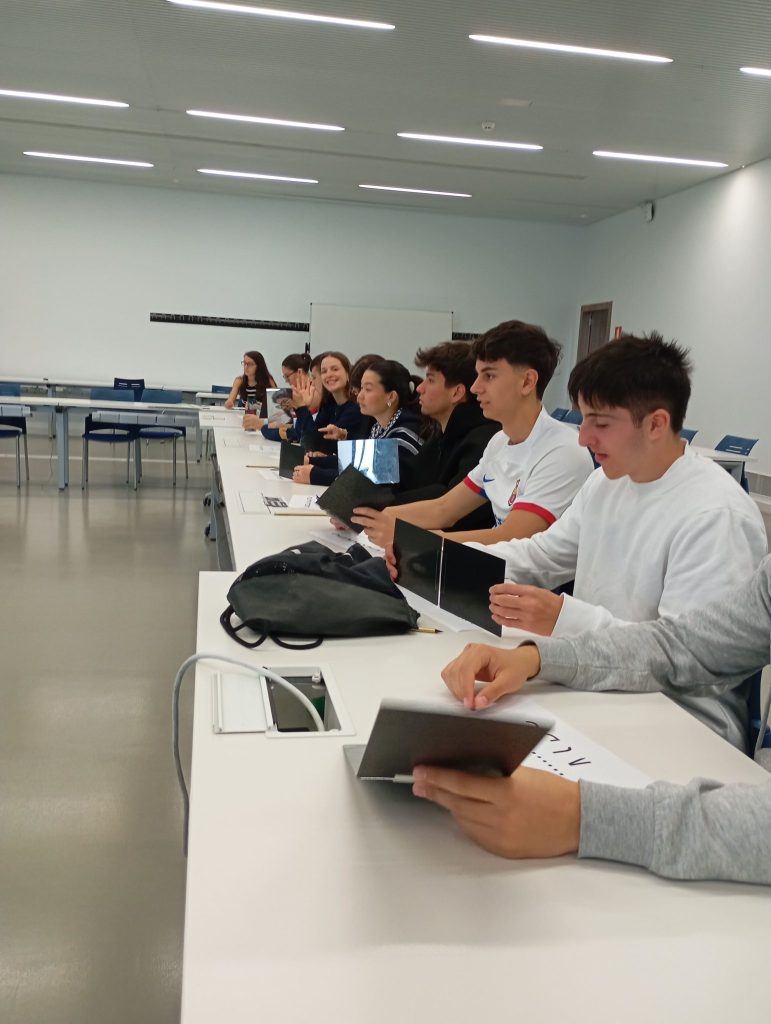 Las condiciones del Aula Digital Conectada del IES Severo Ochoa permitieron que toda la presentación se viera con claridad en la pantalla gigante interactiva, algo que ayudó mucho a seguir cada detalle.