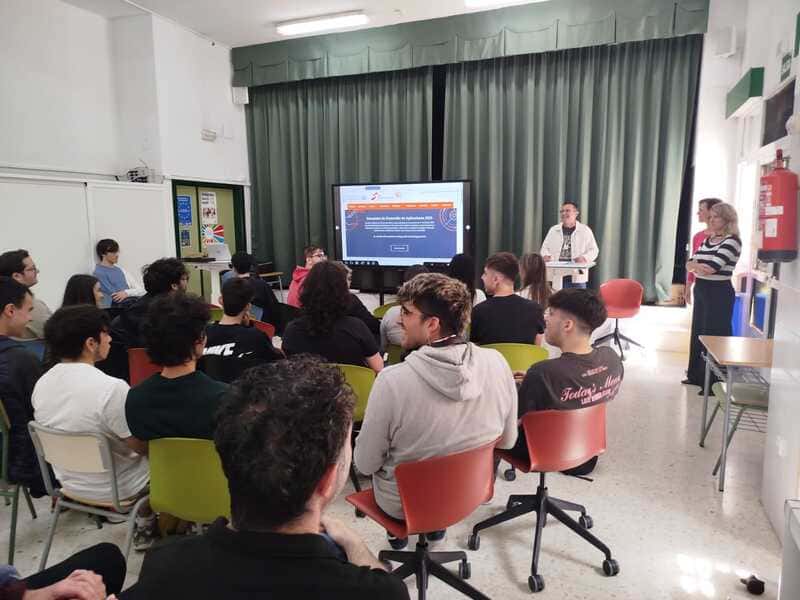 Las condiciones del Aula Digital Conectada del IES Severo Ochoa permitieron que toda la presentación se viera con claridad en la pantalla gigante interactiva, algo que ayudó mucho a seguir cada detalle.