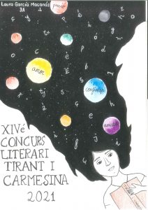Dins d’esta iniciativa també es convoca un concurs de cartells per a il·lustrar el Tirant i Carmesina. Ja coneixem el cartell guanyador d’enguany, realitzat per Jiexi Zheng, de 1r ESO.