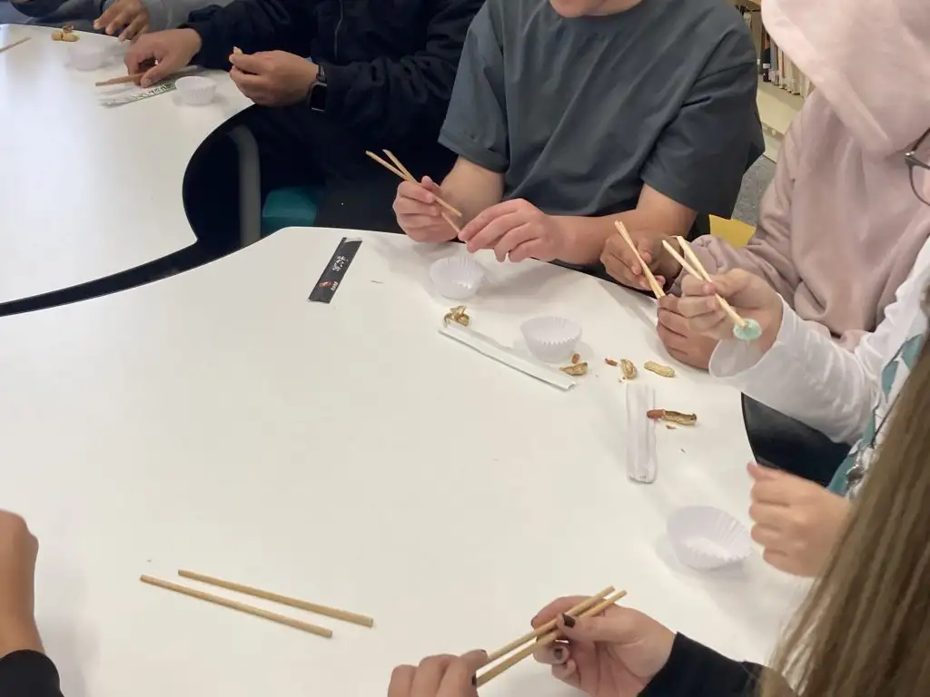 L’alumnat de l’assignatura Taller de literatura i escriptura juvenil, còmic i mànega, de 1r ESO, ha commemorat l’11 de febrer el Dia Nacional del Japó o Kenkoku Kinen no Hi (建国記念の日) mitjançant la realització d’un mural en el qual han consignat elements culturals propis de la societat nipona. La sessió ha conclòs amb una degustació de chuches de mochi (餅) mitjançant les quals l’alumnat ha aprés a usar els tradicionals hashi o escuradents (箸). En esta activitat han comptat amb la inestimable ajuda de la nostra ex alumna, Alejandra Noguera, que està realitzant pràctiques docents en el nostre centre.