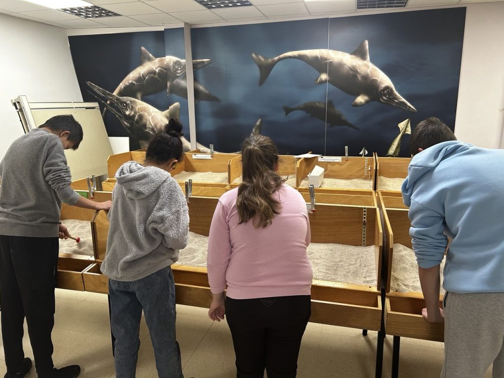 Durante el recorrido, observamos impresionantes representaciones de esqueletos de dinosaurios y descubrimos una gran variedad de fósiles, que nos permitieron conocer más sobre la historia de la Tierra y sus antiguos habitantes. Además, participamos en un taller de simulación de excavación arqueológica y recuperación de fósiles, en el que experimentamos de primera mano el trabajo de los paleontólogos y los procesos de excavación.