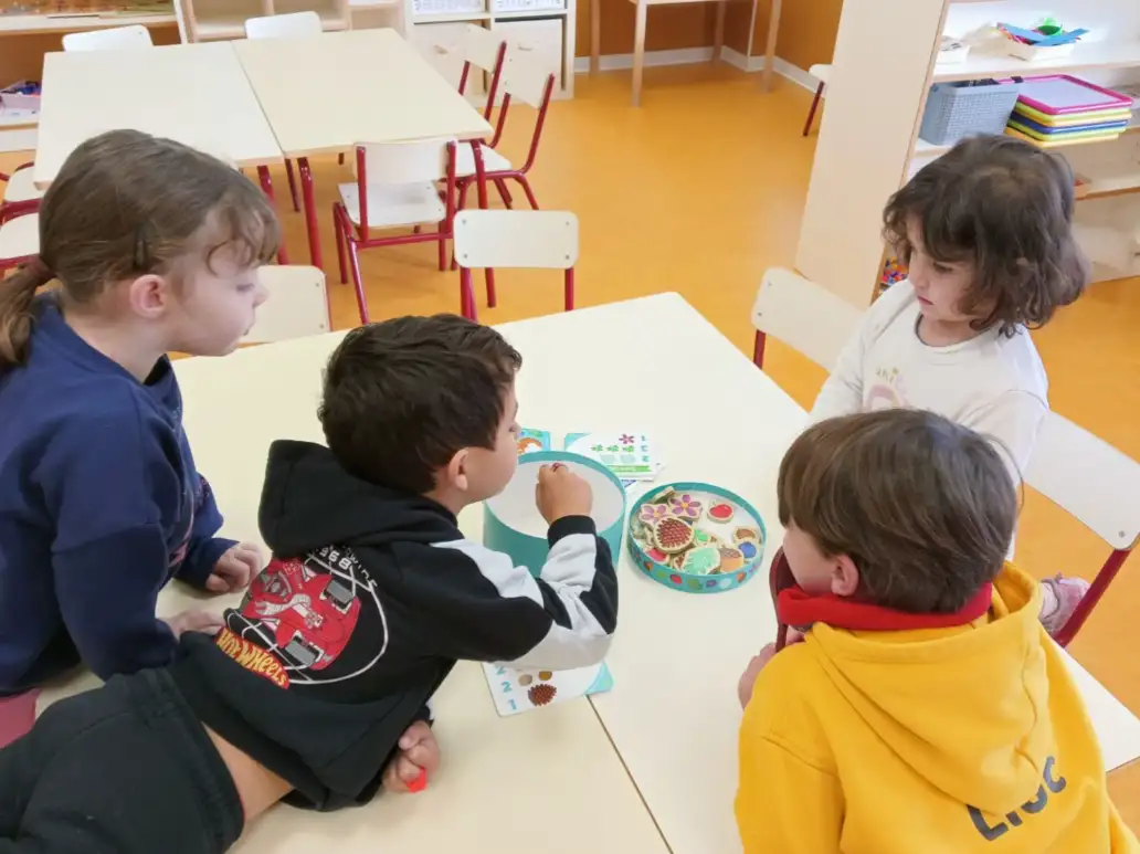 • Jocs de taula: en aquest espai s’inicien en el respecte de les normes, els torns i els temps d’espera. Els alumnes més grans acompanyen els més menuts, ajudant-los i guiant-los durant el joc.