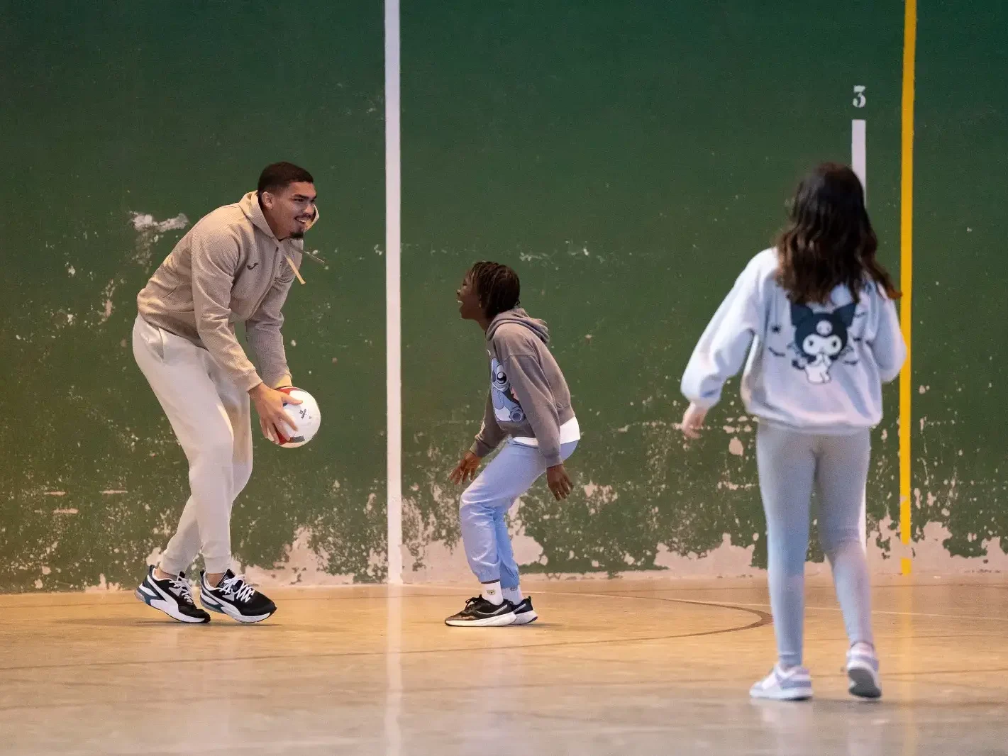 A més, els jugadors han mostrat alguns dels materials que s’utilitzen en aquest esport, com ara les pilotes i les proteccions per a les mans, explicant-nos la seua utilitat i la importància de cuidar-se durant la pràctica esportiva. L’alumnat ha pogut observar de prop aquests elements i fer preguntes sobre el funcionament dels partits i la preparació dels jugadors.