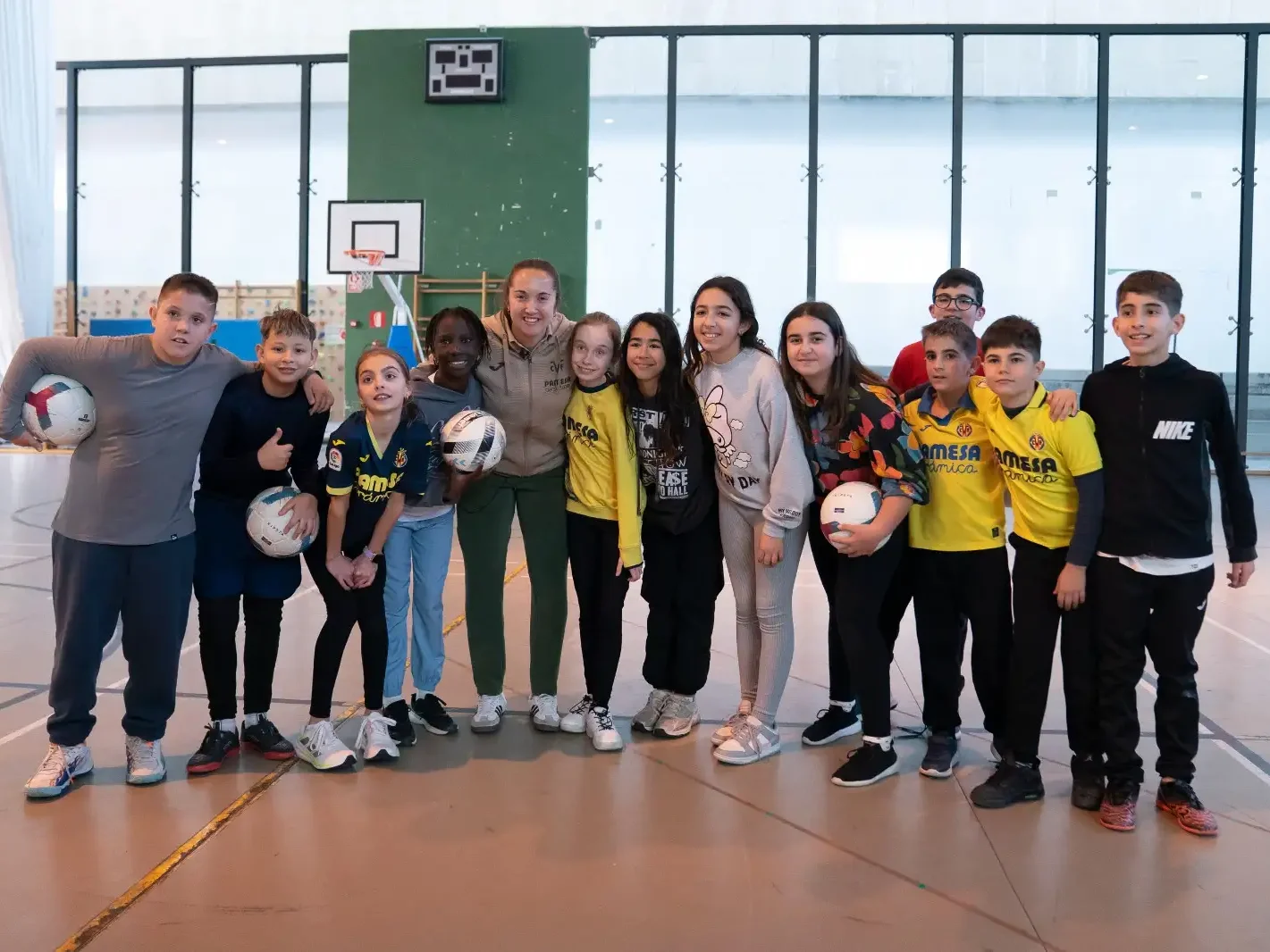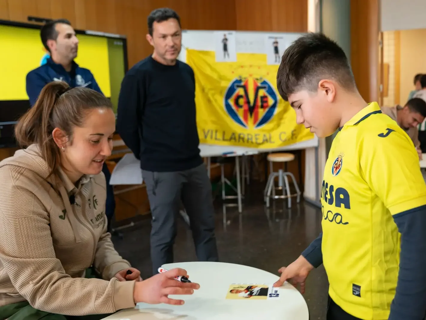 En aquesta ocasió, vam comptar amb la presència de Luiz Júnior, porter del primer equip masculí, i de Mar Segarra, jugadora de l’equip femení del club groguet. L’expedició vila-realenca va ser rebuda per l’alumnat d’una manera molt original i emotiva: interpretant l’himne del Villarreal C.F. amb ukeleles, creant un ambient festiu i ple d’il·lusió des del primer moment.