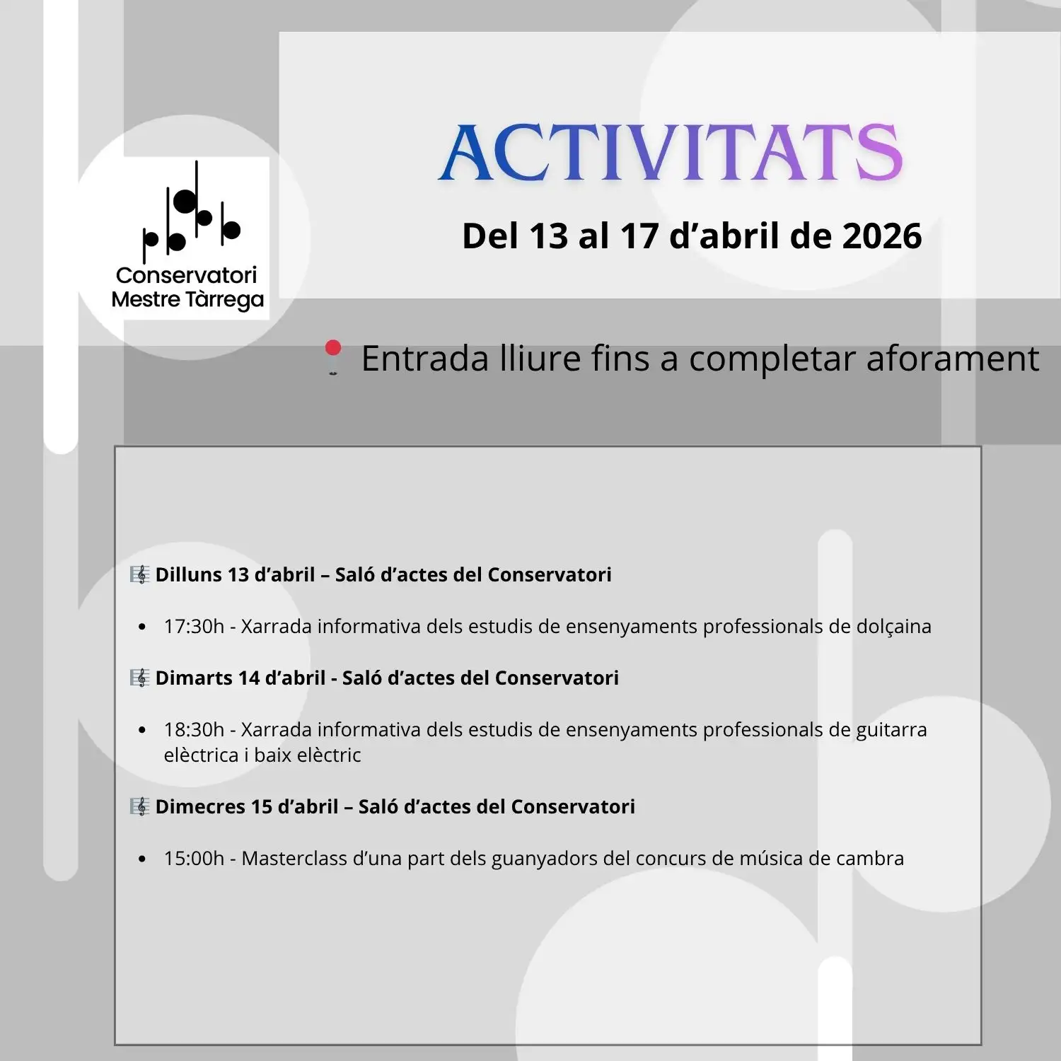 L’alumnat de l’assignatura de Fonaments de Composició va tindre l’oportunitat de gaudir d’una sessió especial dedicada a la música moderna i el jazz, impartida pel nostre professor de guitarra elèctrica. Aquesta activitat va permetre als estudiants apropar-se a nous llenguatges musicals i descobrir recursos creatius diferents als que habitualment treballen a l’aula. Durant la sessió, … Llegir més