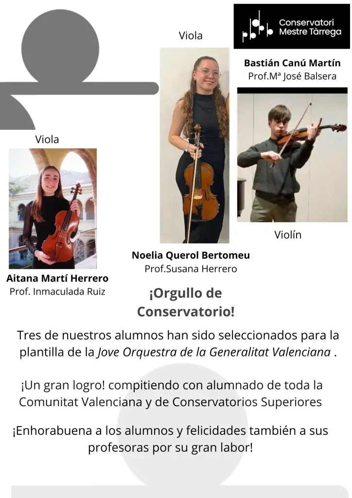- Aitana, Noelia y Bastian, seleccionados para la Jove Orquestra de la Generalitat Valenciana.
