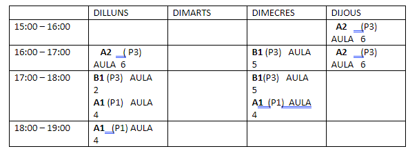 - Inici del curs A-2: dijous 16 d’octubre a les 16.00 h