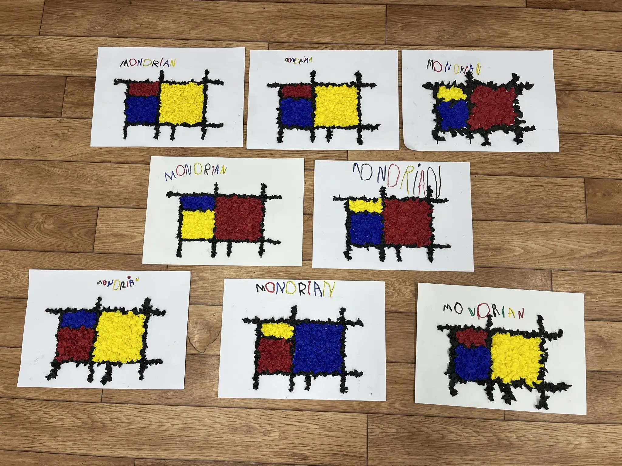 ART MONDRIAN: COMPOSICIÓ EN ROIG, GROC I BLAU AMB PAPER DE SEDA 5