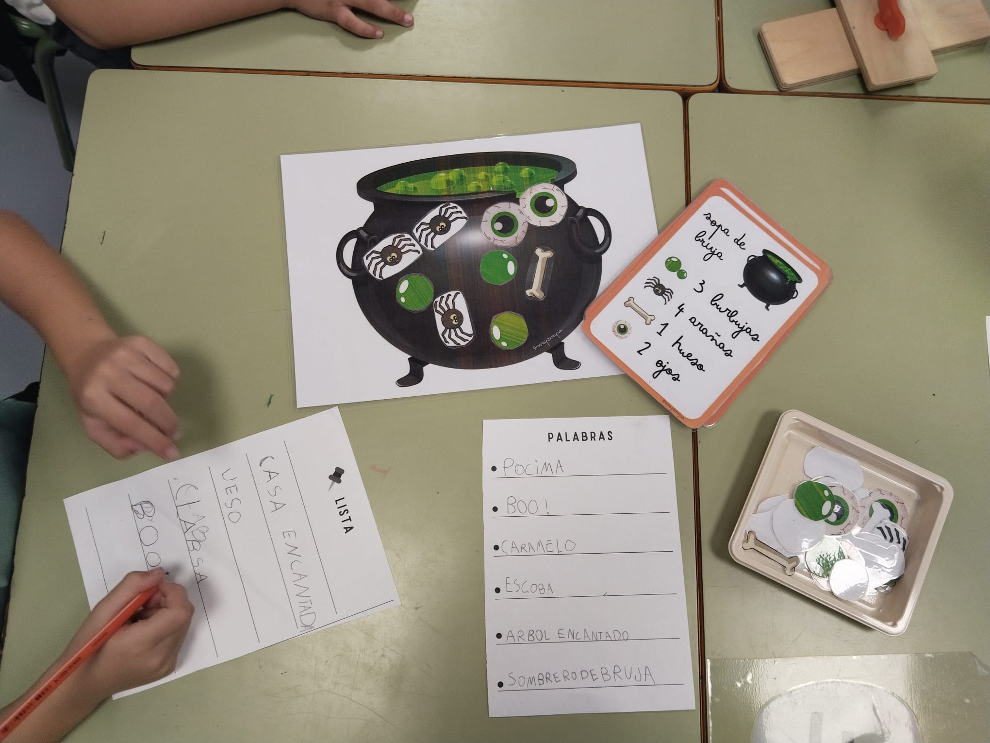 El 1r cicle hem aprés i ens hem divertit amb propostes de Halloween 🎃. Hem composat paraules amb la ruleta, hem fet pòcimes màgiques, sumes i números terrorífics i un memory amb figures i elements de Halloween 🎃 🧹 👻