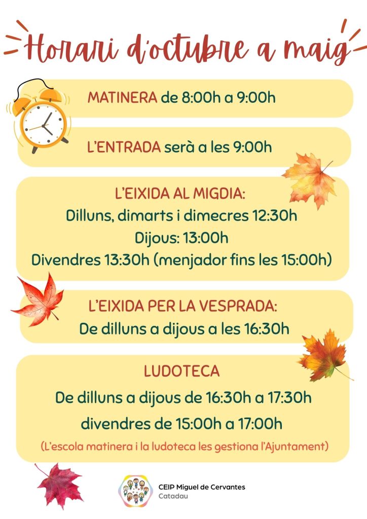 Horari d’octubre a maig 2025-2026