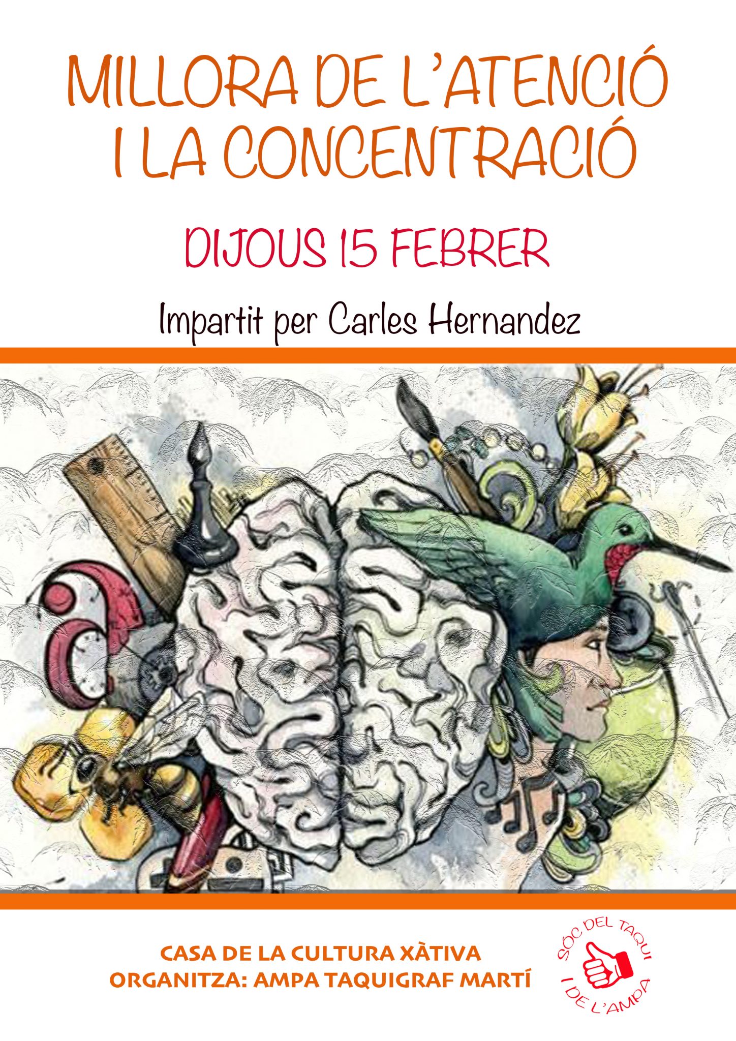 - Curs de formació mares i pares Millora de l’atenció i la concentració: Dijous 15 de febrer les 17:30h (Casa de la Cultura de Xàtiva). Formulari d’inscripció.