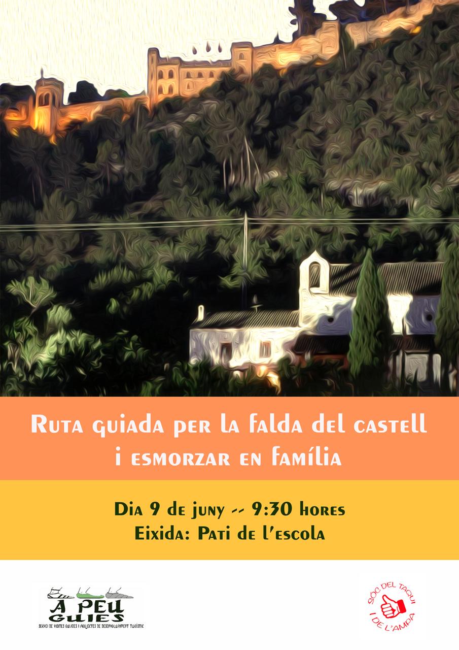 - Ruta Guiada Falda del castell i esmorzar familiar: Diumenge 9 de juny a les 9:30h. Eixida des del pati de l’escola. S’esmorzarà també al pati després de fer la ruta. Porteu entrepà i aigua.