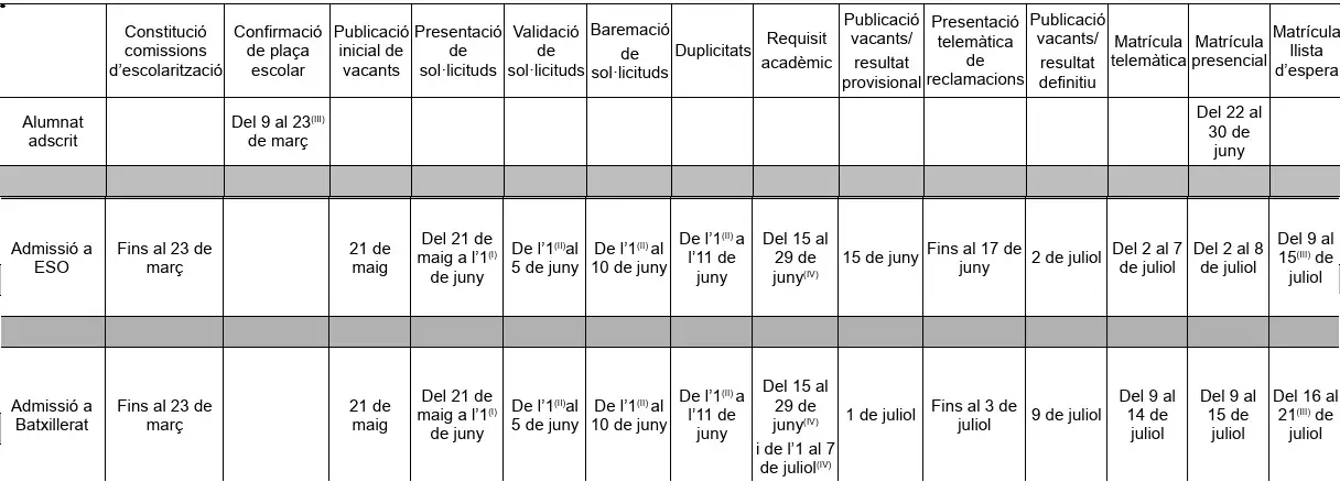 Educació publica el calendari d’admissió i matriculació per al pròxim curs en ESO i Batxillerat i FP