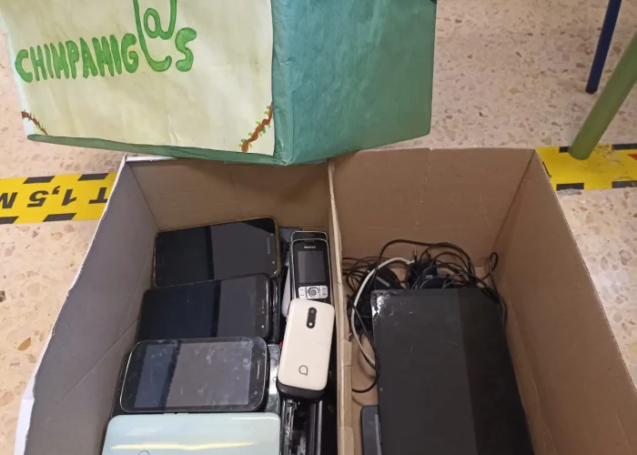 La classe de sisé del CEIP Ausiàs March ha realitzat una activitat solidària recollint telèfons mòbils antics per a apadrinar ximpanzés en una reserva de la fundació Jane Goodall amb l’associació Chimpamig@os. Amb esta iniciativa, l’alumnat ha ajudat a protegir esta espècie i ha aprés la importància del reciclatge i la solidaritat.