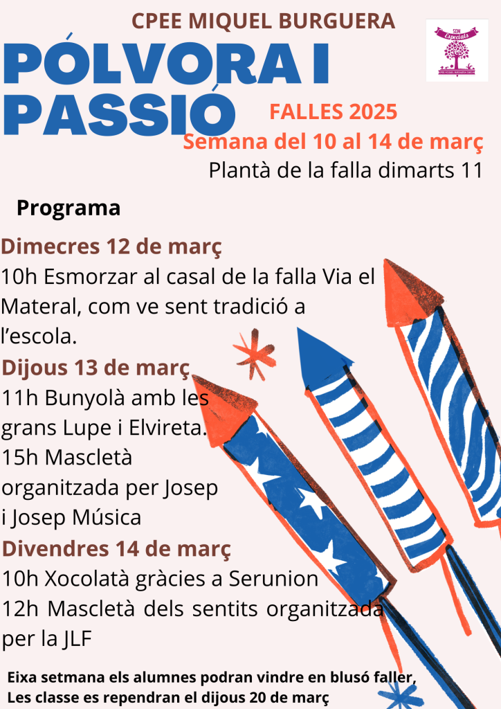 En res ja estem en falles!! Ací teniu un calendari orientatiu de les activitats programades.