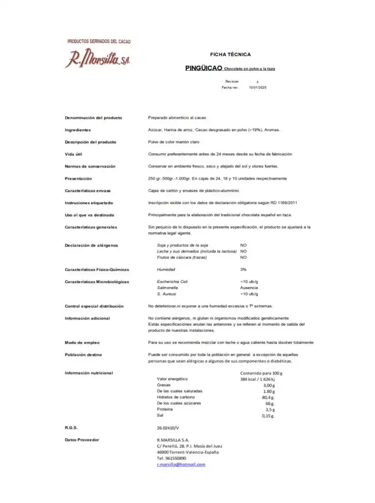 No obstant això, vos enviem la fitxa dels productes per si hem de tenir en compte alguna necessitat de la que no tenim constància.