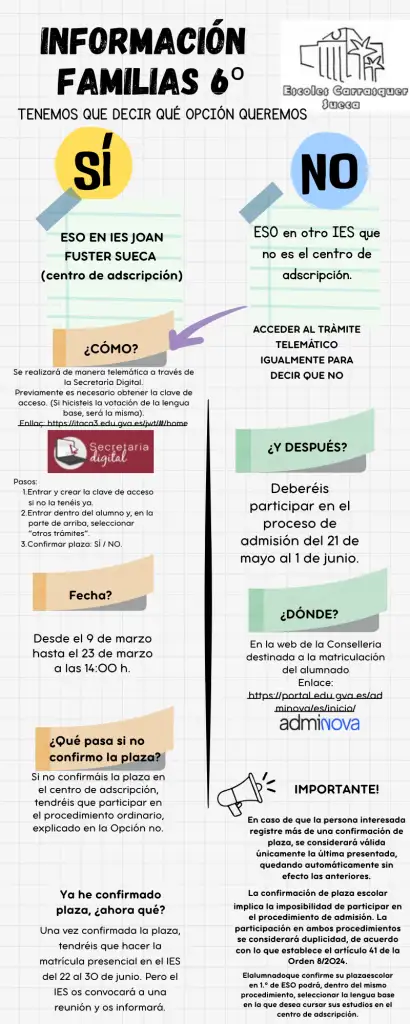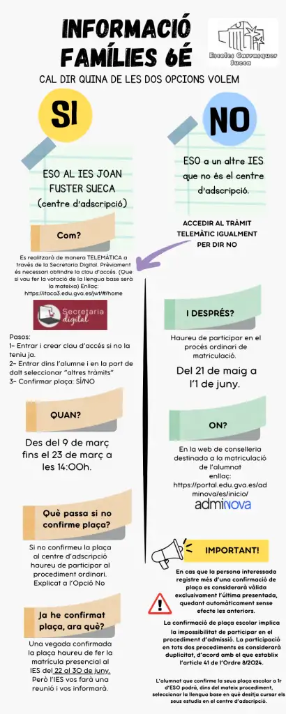 Haureu de marcar si voleu que SÍ que seguisquen l’escolaritat en l’ESO al IES Joan Fuster de Sueca o NO.