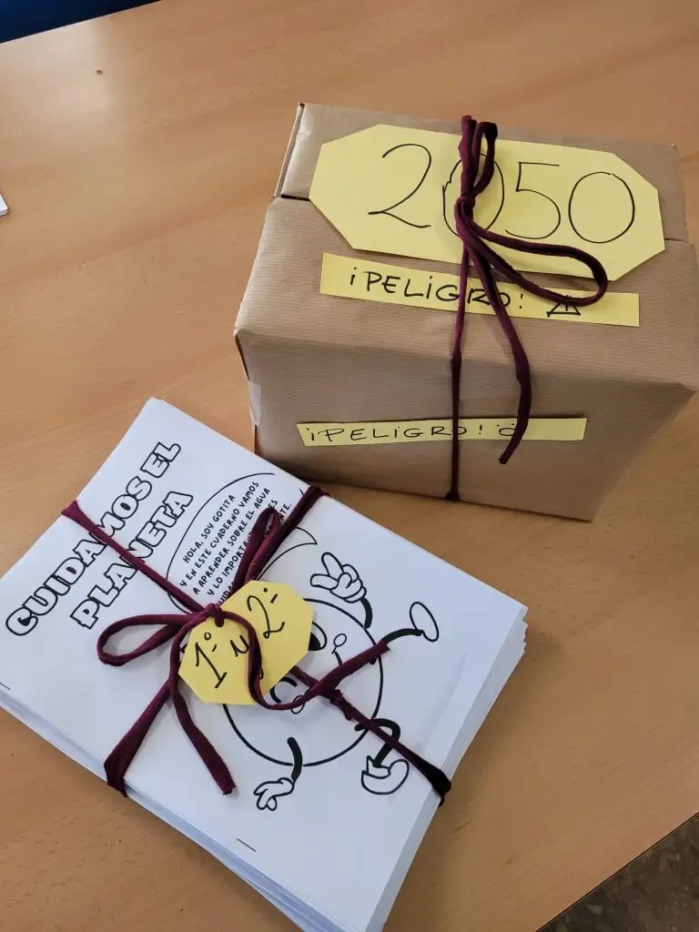 Todo va empezar cuando recibimos una caja del año 2050. Dentro había una carta enviada por una persona del futuro, que nos pedía ayuda para cuidar el agua y proteger el planeta.