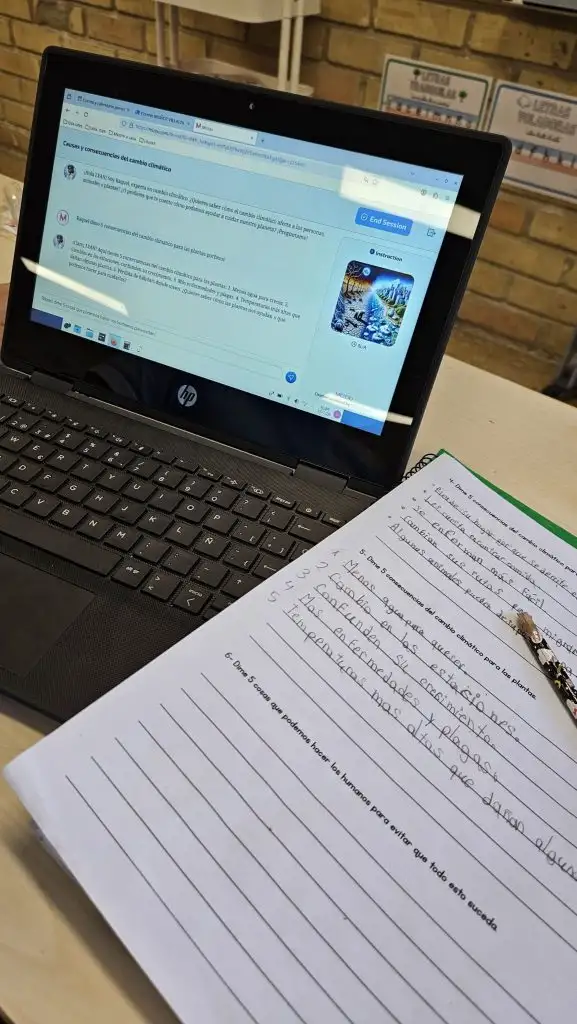 L’alumnat de 4t de Primària ha treballat la competència digital mitjançant un projecte sobre el canvi climàtic. Per a això, han utilitzat un bot educatiu que responia a les seues preguntes, del qual han aprés a extraure i seleccionar informació rellevant de manera responsable.
