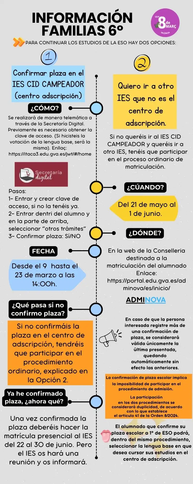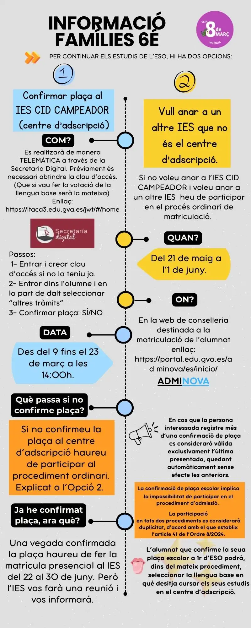 Informació sobre la matriculació a l’institut per a l’alumnat de 6è.