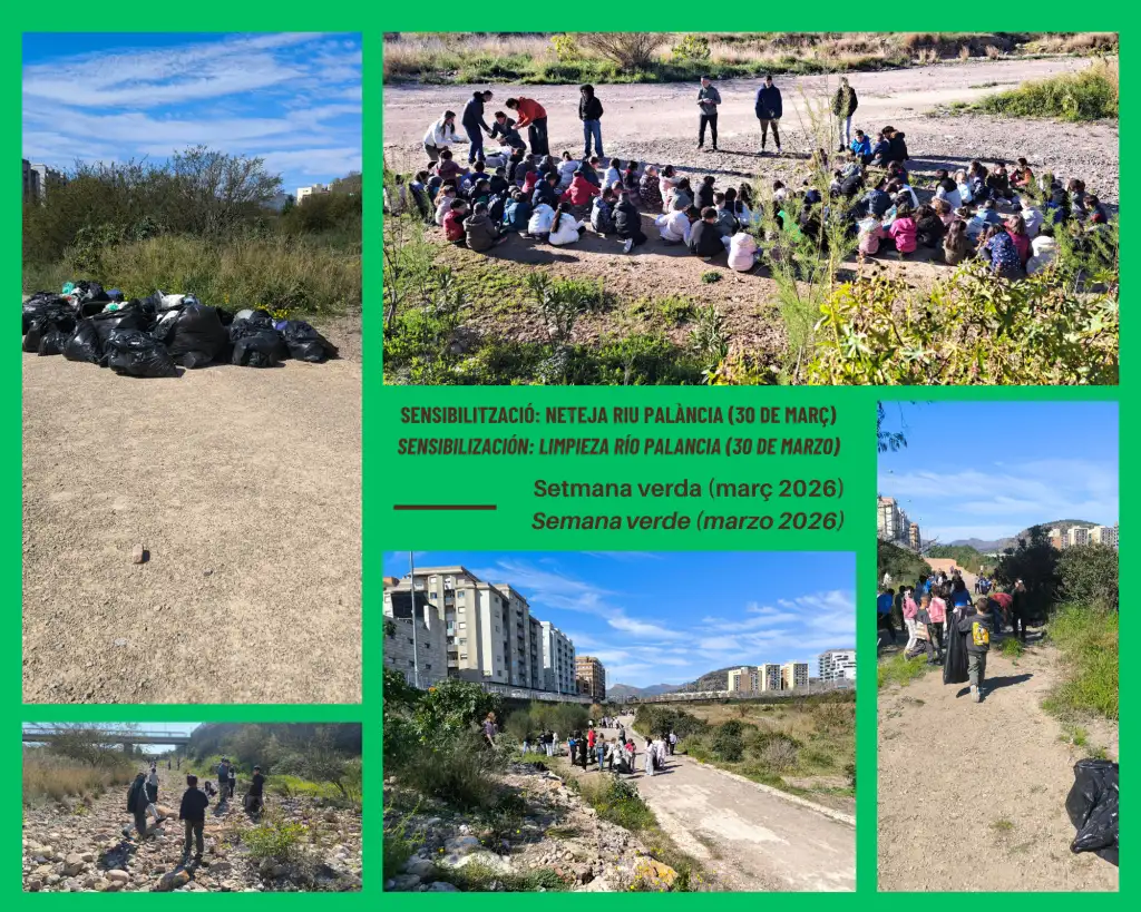 El 30 de marzo, el alumnado de Primaria llevó a cabo una acción de sensibilización medioambiental mediante la limpieza del río río Palancia, mientras que el alumnado de Infantil colaboró con la limpieza del parque más cercano al centro.