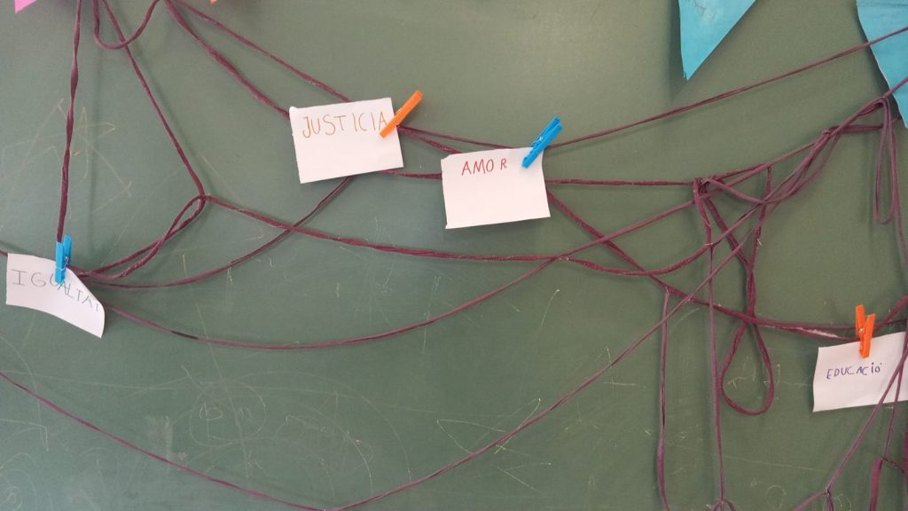 A la nostra escola commemorarem el 25 N fent diferents activitats. El divendres 21 algunes classes de Infantil i Primària reflexionaren sobre els valors de respecte, tolerància i sensibilització i després fèren una “xarxa de protecció” contra la violència amb fil de drap, que posteriorment penjaren per l’aula i els corredors.