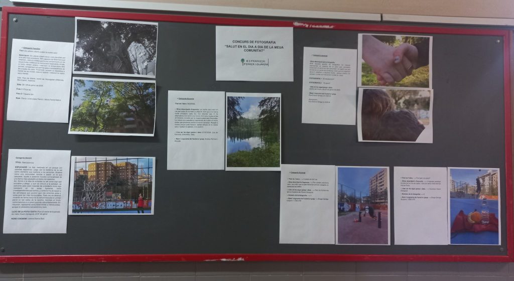 El centre ha compartit les fotografies seleccionades en el Concurs Fotogràfic “Salut en el dia a dia en la meua comunitat”, la participació del qual estava oberta a l’alumnat, famílies, claustre i PAS del centre. Esta iniciativa formava part de les activitats que l’institut ha promogut amb motiu de la celebració en el barri de la IV SETMANA DE LA SALUT DE BENIMACLET. realitzada en la primera setmana de febrer. Pròximament es procedirà al lliurament de premis en les categories establertes. Des del centre volem agrair la participació de la comunitat educativa en este certamen!