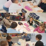La clase de 1° ha empezado con las estaciones de aprendizaje. De momento han dividido la clase en 2: unos realizaban las actividades del libro, que consistían en unir dos números para obtener el 10 y, la otra mitad, experimentaba con las regletas para conseguir el 10 de diferentes formas. Luego se intercambiaban. Y por … - Celebramos el Día de la Comunidad Valenciana
