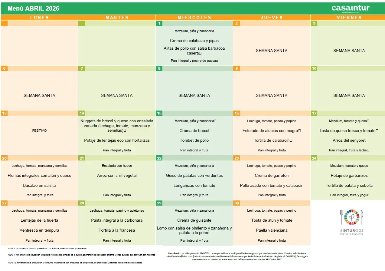 - Haz clic aquí para acceder al menú sin huevo, sin pescado y sin lentejas.