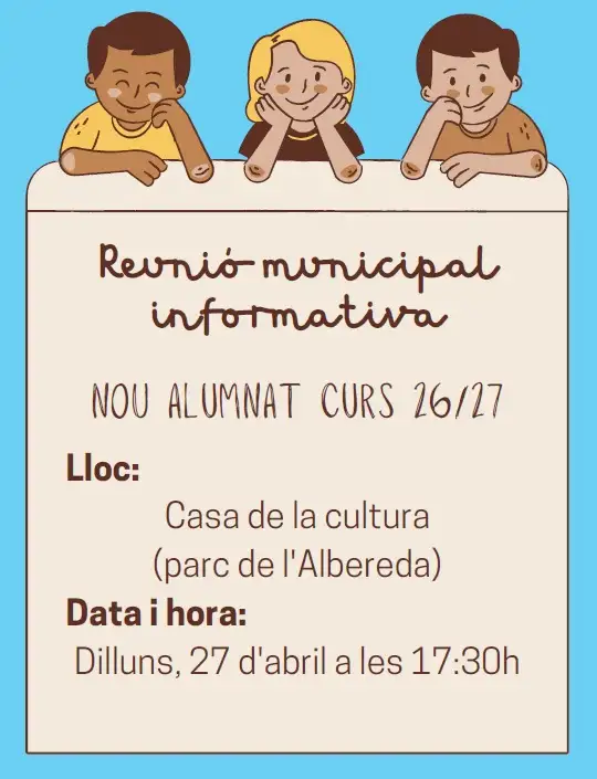 Compartim amb tots vosaltres el calendari d’admissió per al pròxim curs 26/27 i la data de la reunió municipal informativa.