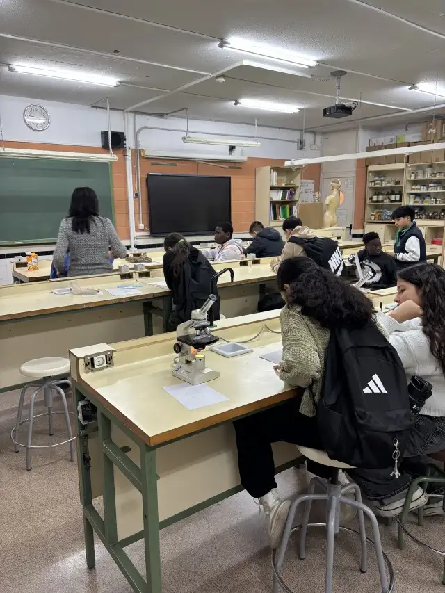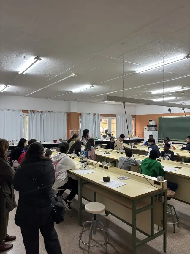 Tot seguit, s’han traslladat al laboratori de Biologia. Allí han participat en un xicotet joc d’identificació d’objectes que ha combinat observació i deducció. L’activitat ha despertat comentaris i preguntes que han enriquit la visita.