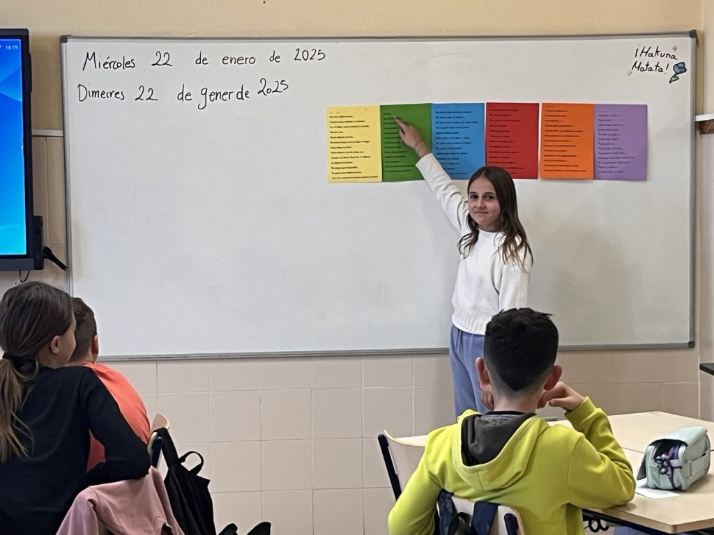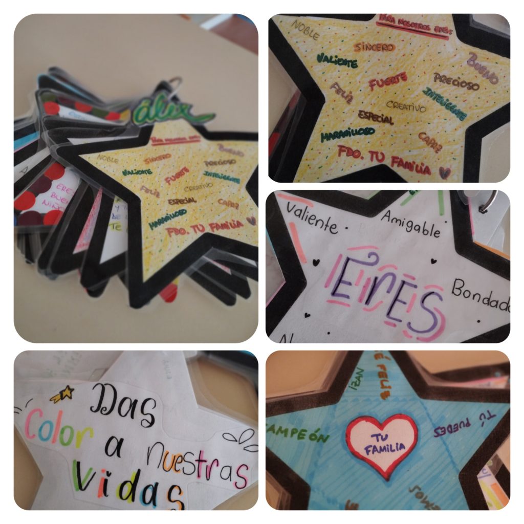 Durante el primer trimestre, y como actividad inicial del Programa Reto, el alumnado de Infantil recibió, de parte sus familias, unas felicitaciones donde resaltaban aquellas cualidades que hacen especiales a sus hijos e hijas. Una manera de que se sientan apoyados, queridos y felices con sus palabras. Estas estrellas forman parte de la biblioteca de aula. A los pequeños/as les encanta observar estas estrellas y recordar que su familia les quiere y apoya aunque no estén presentes.