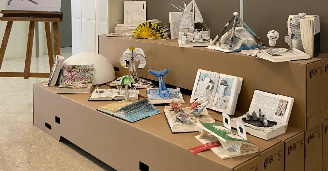 L’alumnat de 1r de Batxillerat Artístic (Volum) transforma llibres reutilitzats en obres d’art que ens conviden a pensar. Una exposició que connecta directament amb el dret a l’educació: llegir és créixer, qüestionar i entendre el món.
