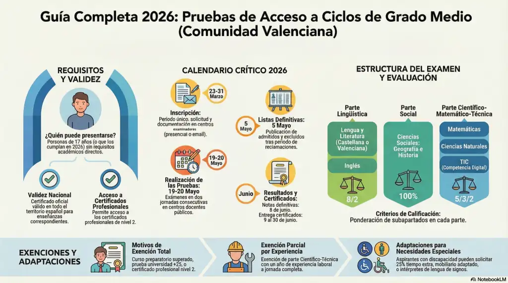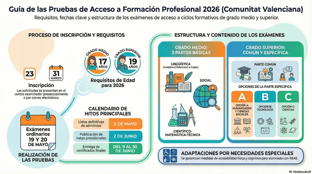 La Conselleria d’Educació ha fet pública la convocatòria de Proves d’accès a Cicles Formatius per a l’any 2026. Les dates més importants són les següents: