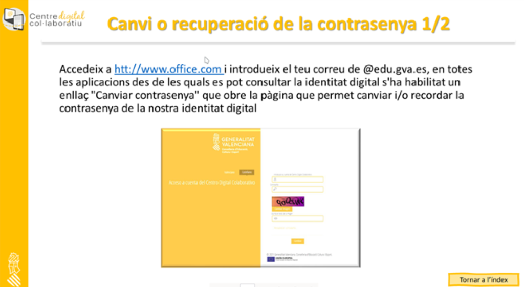 CDC – Identitat digital per a: Docents, No Docents, Alumanat i Centre. Canvi i recuperació de la contrasenya.