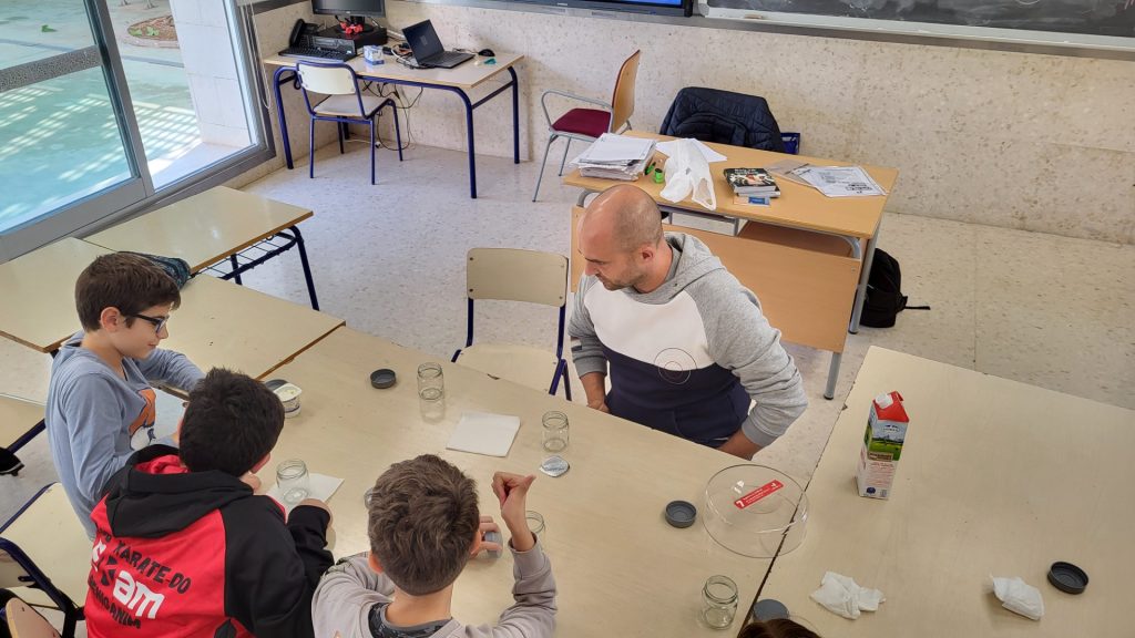 Mentre esperàvem hem aprofitat per fer iogurts, seguim experimentant per entendre el procés de fermentació…Cadascú ha elaborat el seu propi iogurt… hem posat una cullerada de iogurt natural en un pot de vidre, seguidament, hem afegit llet fins omplir el pot, hem barrejat la mescla i ho hem posat a la iogurtera durant 10 hores.