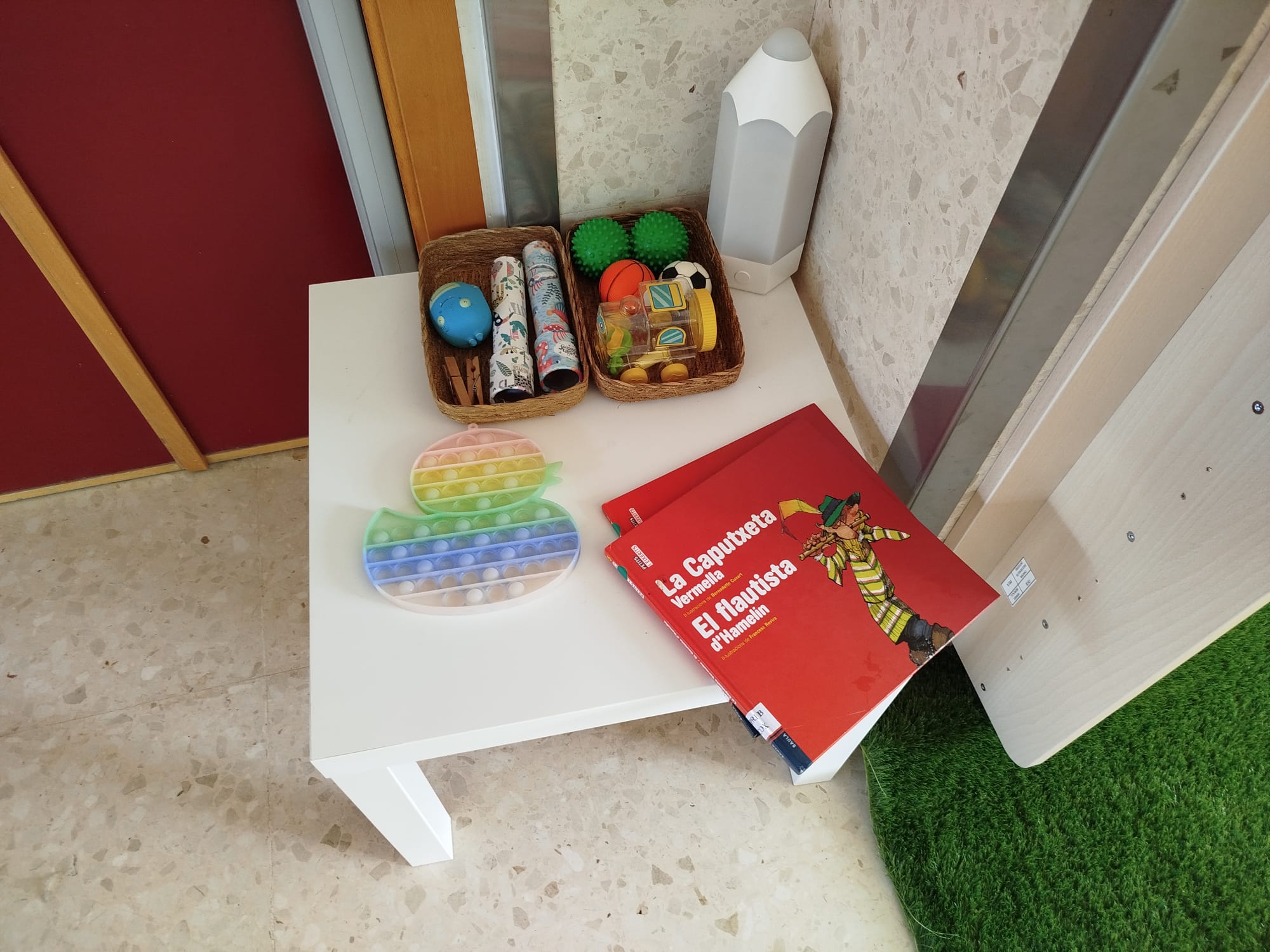 A l’entrada del nostre centre, just al costat del pati, hem creat un espai molt especial: el Racó de la Calma.
