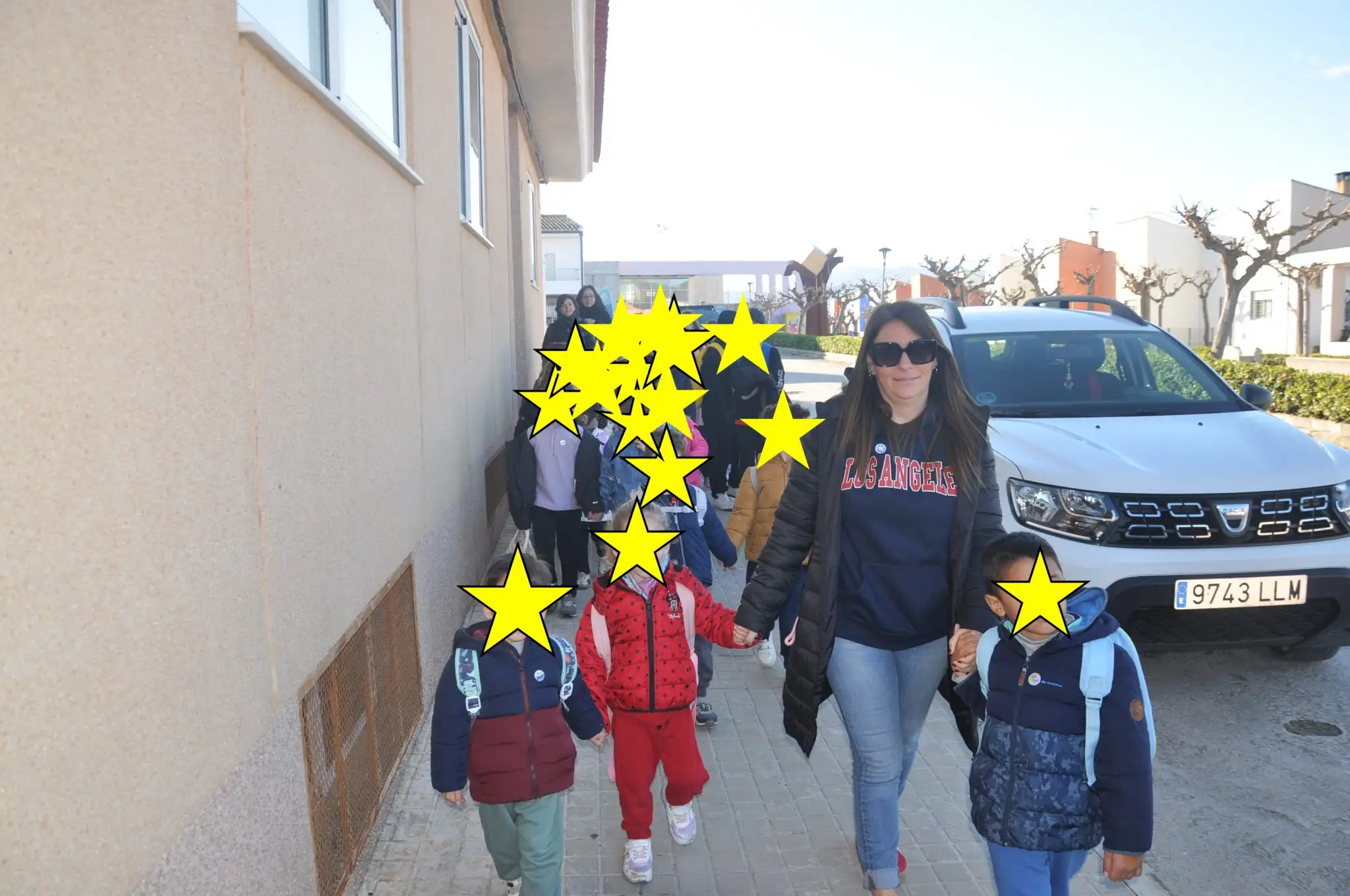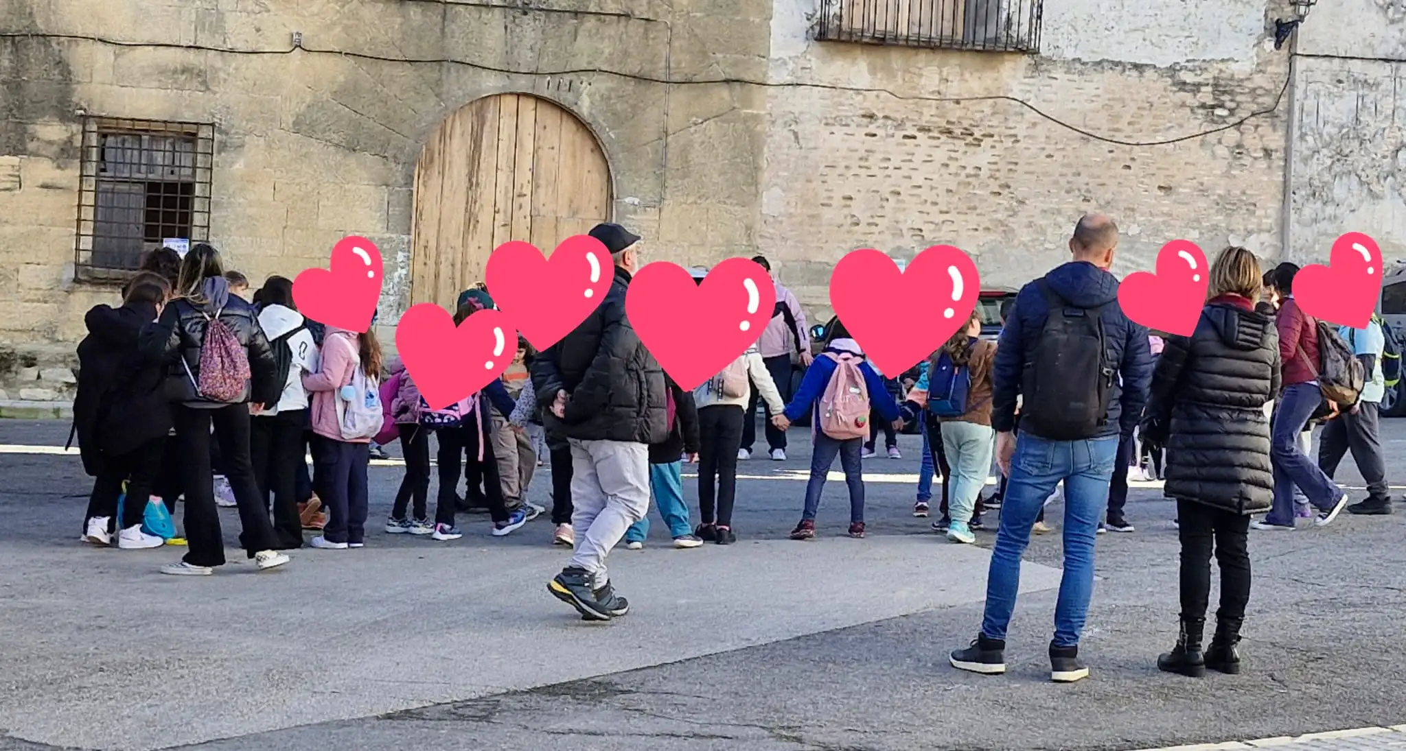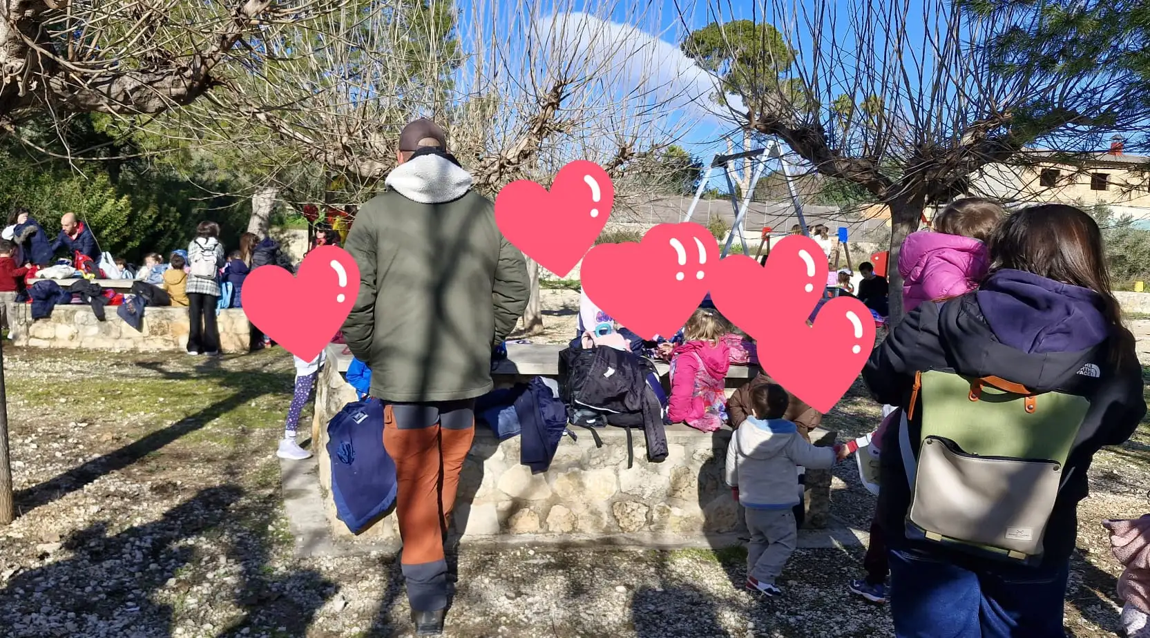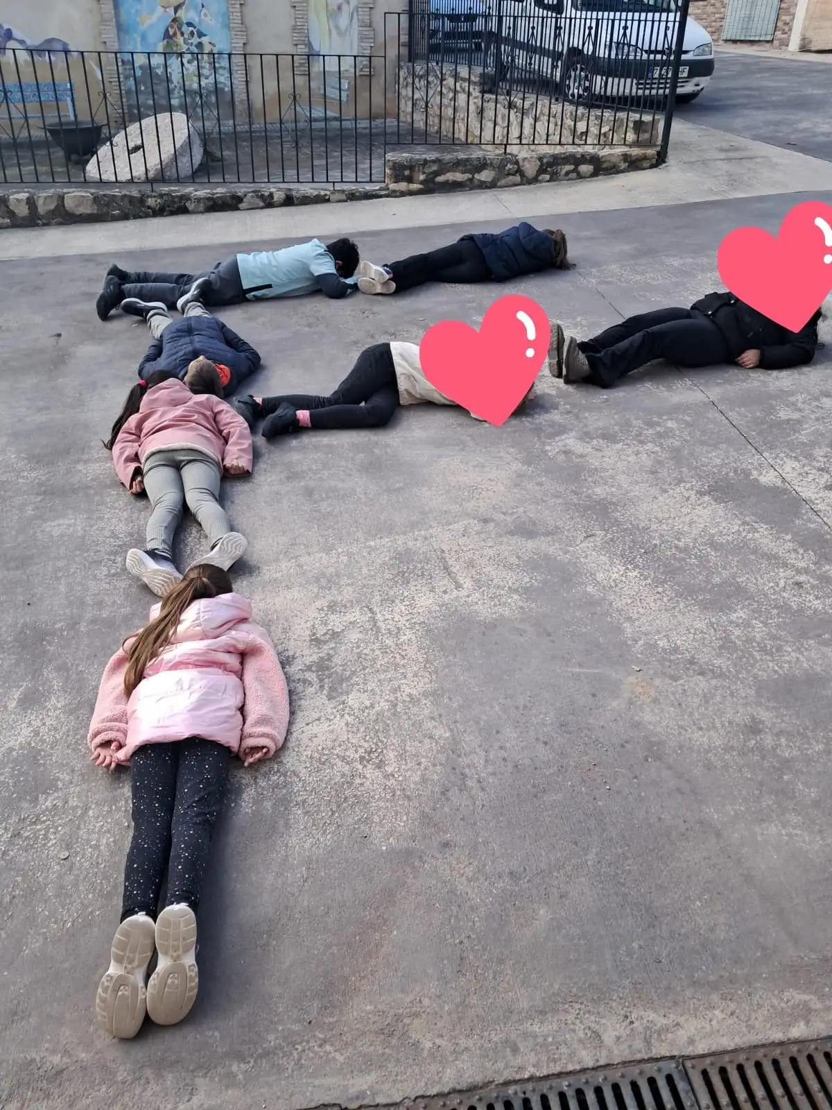 En la plaça del poble, ens vam distribuir entre primaria i infantil.